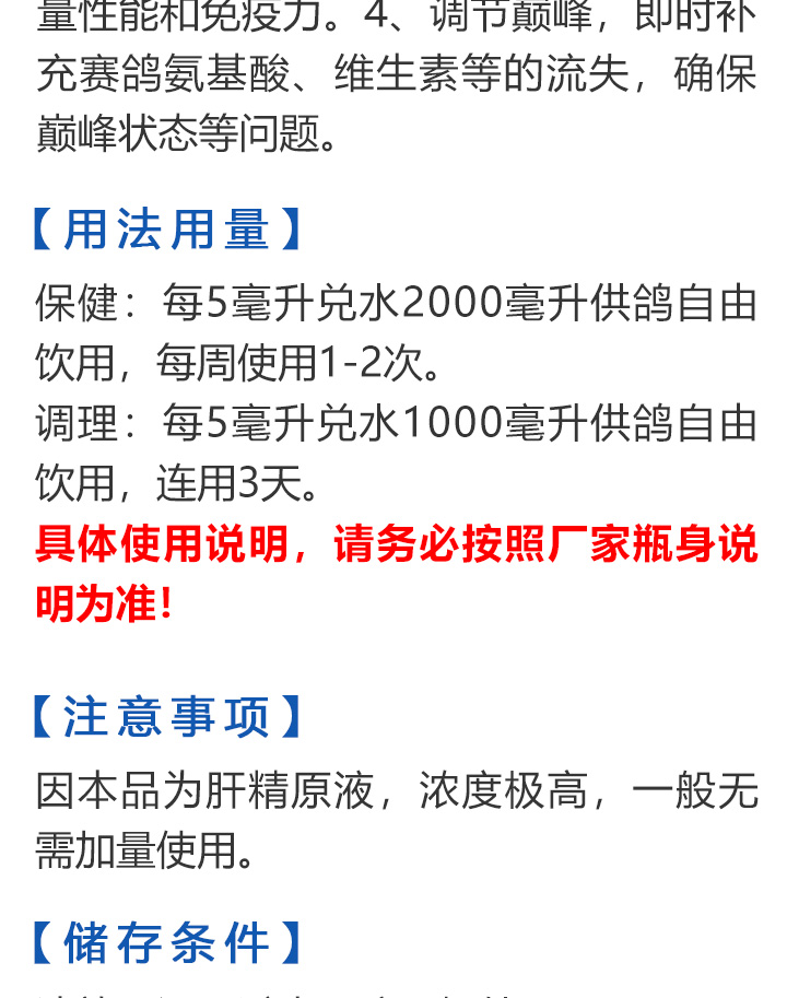 2026线上春展▪满600-40  -  指定商品:【爆灯】蓝精零 5克×10包 ;【爆灯】鸽滴威 5克×10包 ;【爆灯】莎门停 5克×10包 ;【爆灯】崇威灵 5克×10包 体内虫;【爆灯】益南混甘 5克×10包 ;【爆灯】回利球 5克×10包 ;【心连心】滴莎 10克×6袋;【爆灯】乎滴亢 5克×10包 ;【爆灯】超浓缩喜乐菌 500毫升 ;【心连心】球莎 10克×6袋 ;【爆灯】维诺护肝精 250毫升 ;【爆灯】虱螨体虫清 500毫升 ;【心连心】呼畅 10克×6袋 ;【爆灯】球可定 100毫升 ;【爆灯】复合预混合饲料Ⅱ维益菌 227克 ;【心连心】瘟痢停 10克×6袋 ;【爆灯】肠道宝 500克 ;【心连心】莎J净 10克×6袋 ;【心连心】鸽C净 10克×6袋 ;【顶峰】复合菌(胶囊)100粒 ;【顶峰】复合菌(粉剂) 280克 ;【顶峰】能量钙(浓缩型) 400毫升 ;【爱丽丝】喉痢清(加强型) 60粒(胶囊) ;【顶峰】能量钙(浓缩型) 2.5升 ;【爱丽丝】衣元净 60粒(胶囊);【施德福】特号六合一混合剂 5克×10包 ;【爱丽丝】毛滴虫净 60粒(胶囊);【爱丽丝】刹杆净(原沙门氏菌大肠杆菌杀星) 60粒(胶囊);【施德福】口服苗A 5克×10包 ;【爱丽丝】肝精 5克×10袋 ;【施德福】卡尼丁肝肾液 250毫升 ;【施德福】精华液 250毫升 ;【爱丽丝】呼吸道特号 60粒 (胶囊) ;【施德福】口服苗液 25毫升 ;【天津版稳拿】稳拿一号(呼吸道) 2公克×8袋 呼吸道;【天津版稳拿】稳拿二号(消化肠道) 3公克×8袋 肠道;【天津版稳拿】稳拿七号(毛滴虫) 2公克×8袋 毛滴虫;【上海龙园】魔宝 1000克 袋装;【上海龙园】维他肝精 250毫升 ;【上海龙园】鸽绿茶 100克 ;【上海龙园】浴宝 200克 ;【上海龙园】小育雏宝胶囊 100粒 ;【上海龙园】菌乐多 500毫升;【先锋】呼喉霸 5克×10包;【先锋】依原净 5克×10包 ;【西安凯鸽】客线枉 30毫升;【西安凯鸽】至樽独霸 100克;【西安凯鸽】至樽独霸 60粒(胶囊);【爆灯】T5鸽疫快克 20毫升 ;【西安凯鸽】果蔬营养丸 700克;【西安凯鸽】果蔬营养丸 2000克;【天津版稳拿】稳拿三号 2克×8包 球虫;【天津版稳拿】幼鸽夺霸 100粒 ;【天津版稳拿】幼鸽夺霸 300粒 ;【天津版稳拿】比赛夺霸3号 100粒 ;【天津版稳拿】比赛夺霸3号 300粒 ;【心连心】毛莎胶囊 60粒 ;【心连心】球锋胶囊 60粒 ;【天津版稳拿】虫清 3克×8包 体内虫;【心连心】呼畅 60粒(胶囊) ;【天津版稳拿】喉清 3克×8包 支原体/衣原体/念珠菌/呼吸道;【心连心】瘟痢停 60粒(胶囊) ;【天津版稳拿】粮霉清 200克 ;【心连心】莎J净胶囊 60粒 ;【爆灯】一滴灵 10毫升 单眼伤风;【爆灯】呼鼻灵 10毫升 ;【心连心】鸽C净 60粒(胶囊) ;【爆灯】维诺速补 100粒 ;【爆灯】老鸟回春丸 100粒 ;【心连心】毛呼二合一 10克×6袋;【爆灯】老鸟生子丸 100粒;【爆灯】依圆青 5克×10袋 ;【心连心】百消砃 100丸 ;【爆灯】泰力福 5克×10袋 呼吸道;【心连心】百消潵 150克 ;【爆灯】卫康防火墙 500毫升 ;【爆灯】矿力高峰液 250毫升;【心连心】独利双清 250毫升 ;【心连心】二合一啤酒酵母粉 600克 ;【爆灯】钙力奇 250毫升;【心连心】益酶多维电解质 150克 ;【爆灯】本草亢独饮 250毫升 ;【心连心】强化肝精(粉剂) 10克×10袋 ;【先锋】呼爽先锋 5克×10包 ;【心连心】强化肝精浓缩液 120毫升 ;【先锋】呼毛二合一 5克×10包 ;李猛推荐【爆灯】鸽疫康 500毫升 ;【先锋】先锋三合一 5克×10包 球虫/毛滴虫/沙门氏;【心连心】生物多肽矿物磷钙粉 500克 ;【先锋】净滴先锋 5克×10包;【心连心】AM活菌浓缩液 500毫升 ;【先锋】不脱翼 5毫升;李猛推荐【爆灯】维诺保 100毫升 ;【心连心】多效营养精华素 1680克 ;【心连心】AD3磷钙液 250毫升 ;【爆灯】超能素5000 1500克袋装 ;【心连心】瘟痢停丸 60丸 ;【爆灯】复合预混合饲料/6合1能量营养素 250克 ;【心连心】优益活菌液 1000毫升 ;【爱丽丝】喉痢清 5克×10袋 ;【上海龙园】种鸽宝 300粒 ;【上海龙园】种鸽粉 200克 ;【爱丽丝】衣原净2代 5克×10袋 ;【上海龙园】一喷灵 25毫升 ;【爱丽丝】毛滴净 5克×10袋 ;【上海龙园】绿色精 500毫升;【爱丽丝】刹杆净(原沙门氏菌大肠杆菌杀星) 5克×10袋 ;【上海龙园】营养蒜油 200毫升;【爱丽丝】呼吸道特号 5克×10袋 ;【上海龙园】康飞力 200毫升;【顶峰】保比液 100毫升 ;【上海龙园】赛神滴眼液 10毫升 ;【爱丽丝】毛球二合一 5克×10袋 ;【上海龙园】一滴灵 10毫升 单眼伤风;【爱丽丝】毛滴虫球虫二合一 60粒 ;【上海龙园】泻必停 5克×10袋 ;【顶峰】牛至香酚保比液 500毫升 ;【上海龙园】喉必清 5克×10袋;【顶峰】商寒停 100片 伤寒停;【顶峰】能量钙 300克 ;【上海龙园】抗球粉 5克×10包;【爱丽丝】稳肠赢 100克 ;【顶峰】全能电解质 500毫升 ;【上海龙园】抗滴粉 5克×10包 ;【顶峰】维他酵母粉 800克 ;【上海龙园】电解质维生素C粉 (甲7.5克+乙12.5克)×10组盒;【上海龙园】小育雏宝片剂 100片;【上海龙园】大育雏宝胶囊 500粒;【上海龙园】嗉囊清 100毫升;【上海龙园】大育雏宝片剂 500片;【上海龙园】粒粒成 100粒;【上海龙园】克虫宝 80粒;【上海龙园】红茶 100克;【上海龙园】强健宝 750克;【凡赛尔】欧乐强 鸽浴粉 1000克 天然沐浴圣品/消除肌肉疲劳/洗澡/洗浴;【爱丽丝】钙磷营养速补 400片;【北斗】雌宝 100粒;【北斗】雄宝 100粒 ;【北斗】克立停 100粒;【北斗】育雏宝 300粒;【天津版稳拿】稳拿五号 3克×8包 单眼伤风;【爆灯】多关秘密武器 30毫升 ;【爆灯】维诺