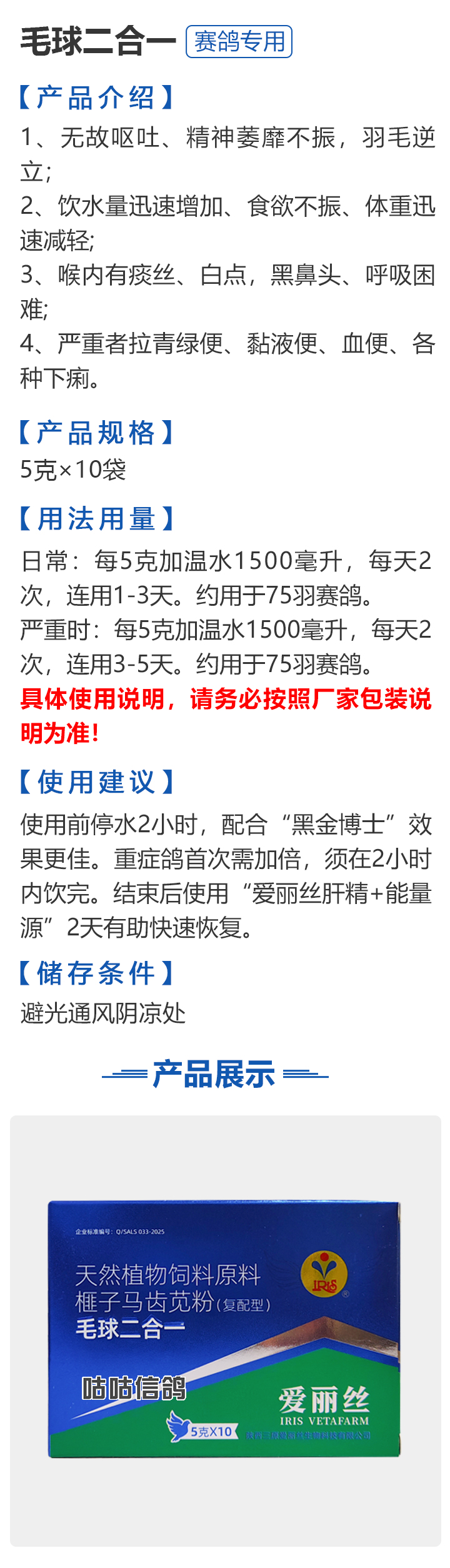 2026线上春展▪6元无门槛  -  指定商品:【爆灯】蓝精零 5克×10包 ;【爆灯】鸽滴威 5克×10包 ;【爆灯】莎门停 5克×10包 ;【爆灯】崇威灵 5克×10包 体内虫;【爆灯】益南混甘 5克×10包 ;【爆灯】回利球 5克×10包 ;【心连心】滴莎 10克×6袋;【爆灯】乎滴亢 5克×10包 ;【爆灯】超浓缩喜乐菌 500毫升 ;【心连心】球莎 10克×6袋 ;【爆灯】维诺护肝精 250毫升 ;【爆灯】虱螨体虫清 500毫升 ;【心连心】呼畅 10克×6袋 ;【爆灯】球可定 100毫升 ;【爆灯】复合预混合饲料Ⅱ维益菌 227克 ;【心连心】瘟痢停 10克×6袋 ;【爆灯】肠道宝 500克 ;【心连心】莎J净 10克×6袋 ;【心连心】鸽C净 10克×6袋 ;【顶峰】复合菌(胶囊)100粒 ;【顶峰】复合菌(粉剂) 280克 ;【顶峰】能量钙(浓缩型) 400毫升 ;【爱丽丝】喉痢清(加强型) 60粒(胶囊) ;【顶峰】能量钙(浓缩型) 2.5升 ;【爱丽丝】衣元净 60粒(胶囊);【施德福】特号六合一混合剂 5克×10包 ;【爱丽丝】毛滴虫净 60粒(胶囊);【爱丽丝】刹杆净(原沙门氏菌大肠杆菌杀星) 60粒(胶囊);【施德福】口服苗A 5克×10包 ;【爱丽丝】肝精 5克×10袋 ;【施德福】卡尼丁肝肾液 250毫升 ;【施德福】精华液 250毫升 ;【爱丽丝】呼吸道特号 60粒 (胶囊) ;【施德福】口服苗液 25毫升 ;【天津版稳拿】稳拿一号(呼吸道) 2公克×8袋 呼吸道;【天津版稳拿】稳拿二号(消化肠道) 3公克×8袋 肠道;【天津版稳拿】稳拿七号(毛滴虫) 2公克×8袋 毛滴虫;【上海龙园】魔宝 1000克 袋装;【上海龙园】维他肝精 250毫升 ;【上海龙园】鸽绿茶 100克 ;【上海龙园】浴宝 200克 ;【上海龙园】小育雏宝胶囊 100粒 ;【上海龙园】菌乐多 500毫升;【先锋】呼喉霸 5克×10包;【先锋】依原净 5克×10包 ;【西安凯鸽】客线枉 30毫升;【西安凯鸽】至樽独霸 100克;【西安凯鸽】至樽独霸 60粒(胶囊);【爆灯】T5鸽疫快克 20毫升 ;【西安凯鸽】果蔬营养丸 700克;【西安凯鸽】果蔬营养丸 2000克;【天津版稳拿】稳拿三号 2克×8包 球虫;【天津版稳拿】幼鸽夺霸 100粒 ;【天津版稳拿】幼鸽夺霸 300粒 ;【天津版稳拿】比赛夺霸3号 100粒 ;【天津版稳拿】比赛夺霸3号 300粒 ;【心连心】毛莎胶囊 60粒 ;【心连心】球锋胶囊 60粒 ;【天津版稳拿】虫清 3克×8包 体内虫;【心连心】呼畅 60粒(胶囊) ;【天津版稳拿】喉清 3克×8包 支原体/衣原体/念珠菌/呼吸道;【心连心】瘟痢停 60粒(胶囊) ;【天津版稳拿】粮霉清 200克 ;【心连心】莎J净胶囊 60粒 ;【爆灯】一滴灵 10毫升 单眼伤风;【爆灯】呼鼻灵 10毫升 ;【心连心】鸽C净 60粒(胶囊) ;【爆灯】维诺速补 100粒 ;【爆灯】老鸟回春丸 100粒 ;【心连心】毛呼二合一 10克×6袋;【爆灯】老鸟生子丸 100粒;【爆灯】依圆青 5克×10袋 ;【心连心】百消砃 100丸 ;【爆灯】泰力福 5克×10袋 呼吸道;【心连心】百消潵 150克 ;【爆灯】卫康防火墙 500毫升 ;【爆灯】矿力高峰液 250毫升;【心连心】独利双清 250毫升 ;【心连心】二合一啤酒酵母粉 600克 ;【爆灯】钙力奇 250毫升;【心连心】益酶多维电解质 150克 ;【爆灯】本草亢独饮 250毫升 ;【心连心】强化肝精(粉剂) 10克×10袋 ;【先锋】呼爽先锋 5克×10包 ;【心连心】强化肝精浓缩液 120毫升 ;【先锋】呼毛二合一 5克×10包 ;李猛推荐【爆灯】鸽疫康 500毫升 ;【先锋】先锋三合一 5克×10包 球虫/毛滴虫/沙门氏;【心连心】生物多肽矿物磷钙粉 500克 ;【先锋】净滴先锋 5克×10包;【心连心】AM活菌浓缩液 500毫升 ;【先锋】不脱翼 5毫升;李猛推荐【爆灯】维诺保 100毫升 ;【心连心】多效营养精华素 1680克 ;【心连心】AD3磷钙液 250毫升 ;【爆灯】超能素5000 1500克袋装 ;【心连心】瘟痢停丸 60丸 ;【爆灯】复合预混合饲料/6合1能量营养素 250克 ;【心连心】优益活菌液 1000毫升 ;【爱丽丝】喉痢清 5克×10袋 ;【上海龙园】种鸽宝 300粒 ;【上海龙园】种鸽粉 200克 ;【爱丽丝】衣原净2代 5克×10袋 ;【上海龙园】一喷灵 25毫升 ;【爱丽丝】毛滴净 5克×10袋 ;【上海龙园】绿色精 500毫升;【爱丽丝】刹杆净(原沙门氏菌大肠杆菌杀星) 5克×10袋 ;【上海龙园】营养蒜油 200毫升;【爱丽丝】呼吸道特号 5克×10袋 ;【上海龙园】康飞力 200毫升;【顶峰】保比液 100毫升 ;【上海龙园】赛神滴眼液 10毫升 ;【爱丽丝】毛球二合一 5克×10袋 ;【上海龙园】一滴灵 10毫升 单眼伤风;【爱丽丝】毛滴虫球虫二合一 60粒 ;【上海龙园】泻必停 5克×10袋 ;【顶峰】牛至香酚保比液 500毫升 ;【上海龙园】喉必清 5克×10袋;【顶峰】商寒停 100片 伤寒停;【顶峰】能量钙 300克 ;【上海龙园】抗球粉 5克×10包;【爱丽丝】稳肠赢 100克 ;【顶峰】全能电解质 500毫升 ;【上海龙园】抗滴粉 5克×10包 ;【顶峰】维他酵母粉 800克 ;【上海龙园】电解质维生素C粉 (甲7.5克+乙12.5克)×10组盒;【上海龙园】小育雏宝片剂 100片;【上海龙园】大育雏宝胶囊 500粒;【上海龙园】嗉囊清 100毫升;【上海龙园】大育雏宝片剂 500片;【上海龙园】粒粒成 100粒;【上海龙园】克虫宝 80粒;【上海龙园】红茶 100克;【上海龙园】强健宝 750克;【凡赛尔】欧乐强 鸽浴粉 1000克 天然沐浴圣品/消除肌肉疲劳/洗澡/洗浴;【爱丽丝】钙磷营养速补 400片;【北斗】雌宝 100粒;【北斗】雄宝 100粒 ;【北斗】克立停 100粒;【北斗】育雏宝 300粒;【天津版稳拿】稳拿五号 3克×8包 单眼伤风;【爆灯】多关秘密武器 30毫升 ;【爆灯】