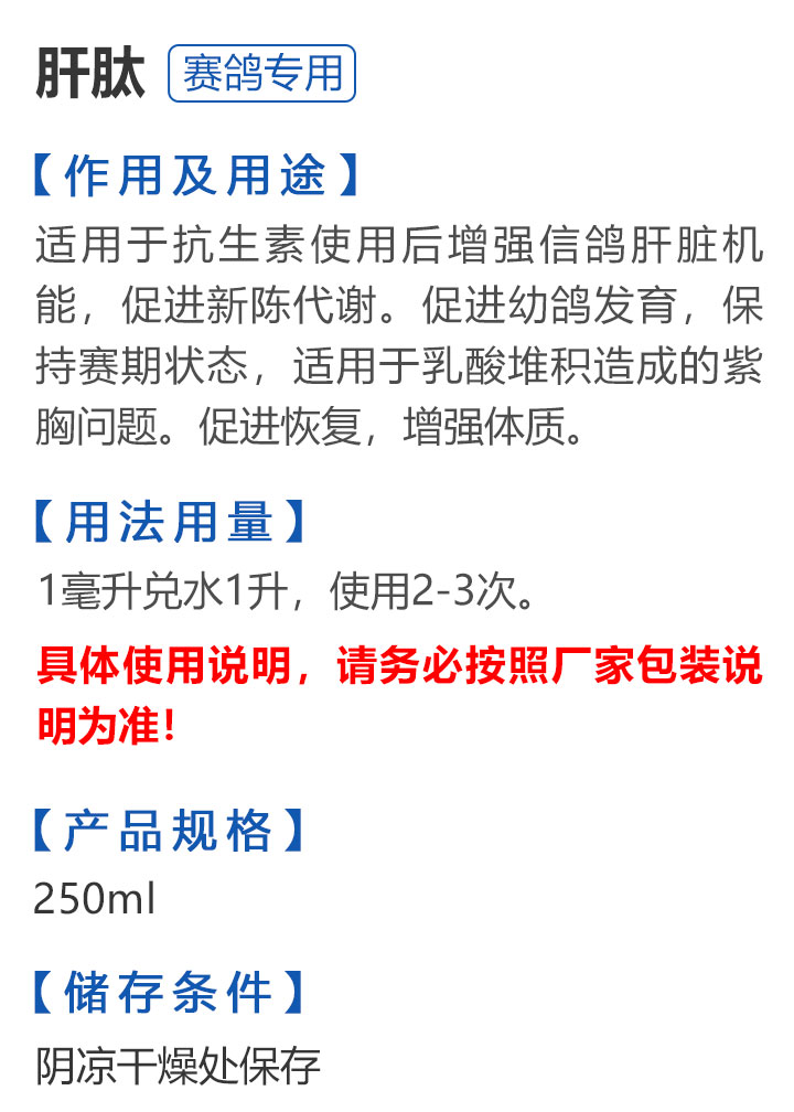 2026线上春展▪6元无门槛  -  指定商品:【爆灯】蓝精零 5克×10包 ;【爆灯】鸽滴威 5克×10包 ;【爆灯】莎门停 5克×10包 ;【爆灯】崇威灵 5克×10包 体内虫;【爆灯】益南混甘 5克×10包 ;【爆灯】回利球 5克×10包 ;【心连心】滴莎 10克×6袋;【爆灯】乎滴亢 5克×10包 ;【爆灯】超浓缩喜乐菌 500毫升 ;【心连心】球莎 10克×6袋 ;【爆灯】维诺护肝精 250毫升 ;【爆灯】虱螨体虫清 500毫升 ;【心连心】呼畅 10克×6袋 ;【爆灯】球可定 100毫升 ;【爆灯】复合预混合饲料Ⅱ维益菌 227克 ;【心连心】瘟痢停 10克×6袋 ;【爆灯】肠道宝 500克 ;【心连心】莎J净 10克×6袋 ;【心连心】鸽C净 10克×6袋 ;【顶峰】复合菌(胶囊)100粒 ;【顶峰】复合菌(粉剂) 280克 ;【顶峰】能量钙(浓缩型) 400毫升 ;【爱丽丝】喉痢清(加强型) 60粒(胶囊) ;【顶峰】能量钙(浓缩型) 2.5升 ;【爱丽丝】衣元净 60粒(胶囊);【施德福】特号六合一混合剂 5克×10包 ;【爱丽丝】毛滴虫净 60粒(胶囊);【爱丽丝】刹杆净(原沙门氏菌大肠杆菌杀星) 60粒(胶囊);【施德福】口服苗A 5克×10包 ;【爱丽丝】肝精 5克×10袋 ;【施德福】卡尼丁肝肾液 250毫升 ;【施德福】精华液 250毫升 ;【爱丽丝】呼吸道特号 60粒 (胶囊) ;【施德福】口服苗液 25毫升 ;【天津版稳拿】稳拿一号(呼吸道) 2公克×8袋 呼吸道;【天津版稳拿】稳拿二号(消化肠道) 3公克×8袋 肠道;【天津版稳拿】稳拿七号(毛滴虫) 2公克×8袋 毛滴虫;【上海龙园】魔宝 1000克 袋装;【上海龙园】维他肝精 250毫升 ;【上海龙园】鸽绿茶 100克 ;【上海龙园】浴宝 200克 ;【上海龙园】小育雏宝胶囊 100粒 ;【上海龙园】菌乐多 500毫升;【先锋】呼喉霸 5克×10包;【先锋】依原净 5克×10包 ;【西安凯鸽】客线枉 30毫升;【西安凯鸽】至樽独霸 100克;【西安凯鸽】至樽独霸 60粒(胶囊);【爆灯】T5鸽疫快克 20毫升 ;【西安凯鸽】果蔬营养丸 700克;【西安凯鸽】果蔬营养丸 2000克;【天津版稳拿】稳拿三号 2克×8包 球虫;【天津版稳拿】幼鸽夺霸 100粒 ;【天津版稳拿】幼鸽夺霸 300粒 ;【天津版稳拿】比赛夺霸3号 100粒 ;【天津版稳拿】比赛夺霸3号 300粒 ;【心连心】毛莎胶囊 60粒 ;【心连心】球锋胶囊 60粒 ;【天津版稳拿】虫清 3克×8包 体内虫;【心连心】呼畅 60粒(胶囊) ;【天津版稳拿】喉清 3克×8包 支原体/衣原体/念珠菌/呼吸道;【心连心】瘟痢停 60粒(胶囊) ;【天津版稳拿】粮霉清 200克 ;【心连心】莎J净胶囊 60粒 ;【爆灯】一滴灵 10毫升 单眼伤风;【爆灯】呼鼻灵 10毫升 ;【心连心】鸽C净 60粒(胶囊) ;【爆灯】维诺速补 100粒 ;【爆灯】老鸟回春丸 100粒 ;【心连心】毛呼二合一 10克×6袋;【爆灯】老鸟生子丸 100粒;【爆灯】依圆青 5克×10袋 ;【心连心】百消砃 100丸 ;【爆灯】泰力福 5克×10袋 呼吸道;【心连心】百消潵 150克 ;【爆灯】卫康防火墙 500毫升 ;【爆灯】矿力高峰液 250毫升;【心连心】独利双清 250毫升 ;【心连心】二合一啤酒酵母粉 600克 ;【爆灯】钙力奇 250毫升;【心连心】益酶多维电解质 150克 ;【爆灯】本草亢独饮 250毫升 ;【心连心】强化肝精(粉剂) 10克×10袋 ;【先锋】呼爽先锋 5克×10包 ;【心连心】强化肝精浓缩液 120毫升 ;【先锋】呼毛二合一 5克×10包 ;李猛推荐【爆灯】鸽疫康 500毫升 ;【先锋】先锋三合一 5克×10包 球虫/毛滴虫/沙门氏;【心连心】生物多肽矿物磷钙粉 500克 ;【先锋】净滴先锋 5克×10包;【心连心】AM活菌浓缩液 500毫升 ;【先锋】不脱翼 5毫升;李猛推荐【爆灯】维诺保 100毫升 ;【心连心】多效营养精华素 1680克 ;【心连心】AD3磷钙液 250毫升 ;【爆灯】超能素5000 1500克袋装 ;【心连心】瘟痢停丸 60丸 ;【爆灯】复合预混合饲料/6合1能量营养素 250克 ;【心连心】优益活菌液 1000毫升 ;【爱丽丝】喉痢清 5克×10袋 ;【上海龙园】种鸽宝 300粒 ;【上海龙园】种鸽粉 200克 ;【爱丽丝】衣原净2代 5克×10袋 ;【上海龙园】一喷灵 25毫升 ;【爱丽丝】毛滴净 5克×10袋 ;【上海龙园】绿色精 500毫升;【爱丽丝】刹杆净(原沙门氏菌大肠杆菌杀星) 5克×10袋 ;【上海龙园】营养蒜油 200毫升;【爱丽丝】呼吸道特号 5克×10袋 ;【上海龙园】康飞力 200毫升;【顶峰】保比液 100毫升 ;【上海龙园】赛神滴眼液 10毫升 ;【爱丽丝】毛球二合一 5克×10袋 ;【上海龙园】一滴灵 10毫升 单眼伤风;【爱丽丝】毛滴虫球虫二合一 60粒 ;【上海龙园】泻必停 5克×10袋 ;【顶峰】牛至香酚保比液 500毫升 ;【上海龙园】喉必清 5克×10袋;【顶峰】商寒停 100片 伤寒停;【顶峰】能量钙 300克 ;【上海龙园】抗球粉 5克×10包;【爱丽丝】稳肠赢 100克 ;【顶峰】全能电解质 500毫升 ;【上海龙园】抗滴粉 5克×10包 ;【顶峰】维他酵母粉 800克 ;【上海龙园】电解质维生素C粉 (甲7.5克+乙12.5克)×10组盒;【上海龙园】小育雏宝片剂 100片;【上海龙园】大育雏宝胶囊 500粒;【上海龙园】嗉囊清 100毫升;【上海龙园】大育雏宝片剂 500片;【上海龙园】粒粒成 100粒;【上海龙园】克虫宝 80粒;【上海龙园】红茶 100克;【上海龙园】强健宝 750克;【凡赛尔】欧乐强 鸽浴粉 1000克 天然沐浴圣品/消除肌肉疲劳/洗澡/洗浴;【爱丽丝】钙磷营养速补 400片;【北斗】雌宝 100粒;【北斗】雄宝 100粒 ;【北斗】克立停 100粒;【北斗】育雏宝 300粒;【天津版稳拿】稳拿五号 3克×8包 单眼伤风;【爆灯】多关秘密武器 30毫升 ;【爆灯】