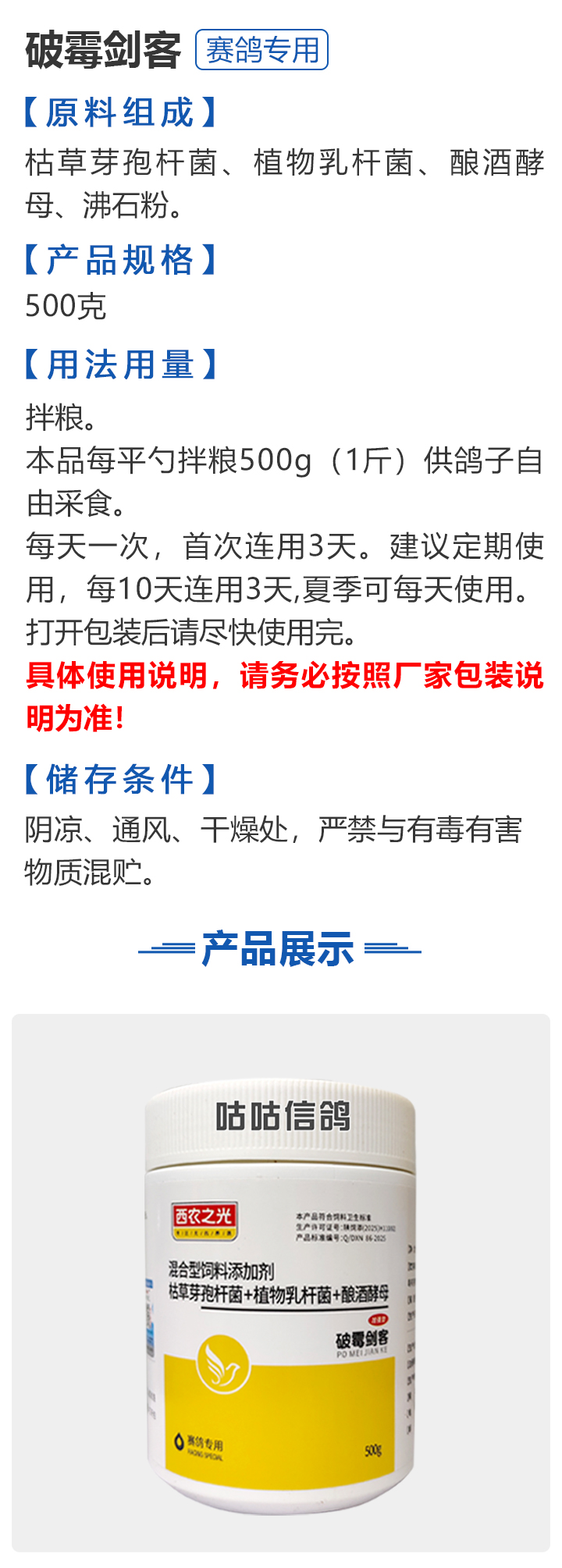 2026线上春展▪6元无门槛  -  指定商品:【爆灯】蓝精零 5克×10包 ;【爆灯】鸽滴威 5克×10包 ;【爆灯】莎门停 5克×10包 ;【爆灯】崇威灵 5克×10包 体内虫;【爆灯】益南混甘 5克×10包 ;【爆灯】回利球 5克×10包 ;【心连心】滴莎 10克×6袋;【爆灯】乎滴亢 5克×10包 ;【爆灯】超浓缩喜乐菌 500毫升 ;【心连心】球莎 10克×6袋 ;【爆灯】维诺护肝精 250毫升 ;【爆灯】虱螨体虫清 500毫升 ;【心连心】呼畅 10克×6袋 ;【爆灯】球可定 100毫升 ;【爆灯】复合预混合饲料Ⅱ维益菌 227克 ;【心连心】瘟痢停 10克×6袋 ;【爆灯】肠道宝 500克 ;【心连心】莎J净 10克×6袋 ;【心连心】鸽C净 10克×6袋 ;【顶峰】复合菌(胶囊)100粒 ;【顶峰】复合菌(粉剂) 280克 ;【顶峰】能量钙(浓缩型) 400毫升 ;【爱丽丝】喉痢清(加强型) 60粒(胶囊) ;【顶峰】能量钙(浓缩型) 2.5升 ;【爱丽丝】衣元净 60粒(胶囊);【施德福】特号六合一混合剂 5克×10包 ;【爱丽丝】毛滴虫净 60粒(胶囊);【爱丽丝】刹杆净(原沙门氏菌大肠杆菌杀星) 60粒(胶囊);【施德福】口服苗A 5克×10包 ;【爱丽丝】肝精 5克×10袋 ;【施德福】卡尼丁肝肾液 250毫升 ;【施德福】精华液 250毫升 ;【爱丽丝】呼吸道特号 60粒 (胶囊) ;【施德福】口服苗液 25毫升 ;【天津版稳拿】稳拿一号(呼吸道) 2公克×8袋 呼吸道;【天津版稳拿】稳拿二号(消化肠道) 3公克×8袋 肠道;【天津版稳拿】稳拿七号(毛滴虫) 2公克×8袋 毛滴虫;【上海龙园】魔宝 1000克 袋装;【上海龙园】维他肝精 250毫升 ;【上海龙园】鸽绿茶 100克 ;【上海龙园】浴宝 200克 ;【上海龙园】小育雏宝胶囊 100粒 ;【上海龙园】菌乐多 500毫升;【先锋】呼喉霸 5克×10包;【先锋】依原净 5克×10包 ;【西安凯鸽】客线枉 30毫升;【西安凯鸽】至樽独霸 100克;【西安凯鸽】至樽独霸 60粒(胶囊);【爆灯】T5鸽疫快克 20毫升 ;【西安凯鸽】果蔬营养丸 700克;【西安凯鸽】果蔬营养丸 2000克;【天津版稳拿】稳拿三号 2克×8包 球虫;【天津版稳拿】幼鸽夺霸 100粒 ;【天津版稳拿】幼鸽夺霸 300粒 ;【天津版稳拿】比赛夺霸3号 100粒 ;【天津版稳拿】比赛夺霸3号 300粒 ;【心连心】毛莎胶囊 60粒 ;【心连心】球锋胶囊 60粒 ;【天津版稳拿】虫清 3克×8包 体内虫;【心连心】呼畅 60粒(胶囊) ;【天津版稳拿】喉清 3克×8包 支原体/衣原体/念珠菌/呼吸道;【心连心】瘟痢停 60粒(胶囊) ;【天津版稳拿】粮霉清 200克 ;【心连心】莎J净胶囊 60粒 ;【爆灯】一滴灵 10毫升 单眼伤风;【爆灯】呼鼻灵 10毫升 ;【心连心】鸽C净 60粒(胶囊) ;【爆灯】维诺速补 100粒 ;【爆灯】老鸟回春丸 100粒 ;【心连心】毛呼二合一 10克×6袋;【爆灯】老鸟生子丸 100粒;【爆灯】依圆青 5克×10袋 ;【心连心】百消砃 100丸 ;【爆灯】泰力福 5克×10袋 呼吸道;【心连心】百消潵 150克 ;【爆灯】卫康防火墙 500毫升 ;【爆灯】矿力高峰液 250毫升;【心连心】独利双清 250毫升 ;【心连心】二合一啤酒酵母粉 600克 ;【爆灯】钙力奇 250毫升;【心连心】益酶多维电解质 150克 ;【爆灯】本草亢独饮 250毫升 ;【心连心】强化肝精(粉剂) 10克×10袋 ;【先锋】呼爽先锋 5克×10包 ;【心连心】强化肝精浓缩液 120毫升 ;【先锋】呼毛二合一 5克×10包 ;李猛推荐【爆灯】鸽疫康 500毫升 ;【先锋】先锋三合一 5克×10包 球虫/毛滴虫/沙门氏;【心连心】生物多肽矿物磷钙粉 500克 ;【先锋】净滴先锋 5克×10包;【心连心】AM活菌浓缩液 500毫升 ;【先锋】不脱翼 5毫升;李猛推荐【爆灯】维诺保 100毫升 ;【心连心】多效营养精华素 1680克 ;【心连心】AD3磷钙液 250毫升 ;【爆灯】超能素5000 1500克袋装 ;【心连心】瘟痢停丸 60丸 ;【爆灯】复合预混合饲料/6合1能量营养素 250克 ;【心连心】优益活菌液 1000毫升 ;【爱丽丝】喉痢清 5克×10袋 ;【上海龙园】种鸽宝 300粒 ;【上海龙园】种鸽粉 200克 ;【爱丽丝】衣原净2代 5克×10袋 ;【上海龙园】一喷灵 25毫升 ;【爱丽丝】毛滴净 5克×10袋 ;【上海龙园】绿色精 500毫升;【爱丽丝】刹杆净(原沙门氏菌大肠杆菌杀星) 5克×10袋 ;【上海龙园】营养蒜油 200毫升;【爱丽丝】呼吸道特号 5克×10袋 ;【上海龙园】康飞力 200毫升;【顶峰】保比液 100毫升 ;【上海龙园】赛神滴眼液 10毫升 ;【爱丽丝】毛球二合一 5克×10袋 ;【上海龙园】一滴灵 10毫升 单眼伤风;【爱丽丝】毛滴虫球虫二合一 60粒 ;【上海龙园】泻必停 5克×10袋 ;【顶峰】牛至香酚保比液 500毫升 ;【上海龙园】喉必清 5克×10袋;【顶峰】商寒停 100片 伤寒停;【顶峰】能量钙 300克 ;【上海龙园】抗球粉 5克×10包;【爱丽丝】稳肠赢 100克 ;【顶峰】全能电解质 500毫升 ;【上海龙园】抗滴粉 5克×10包 ;【顶峰】维他酵母粉 800克 ;【上海龙园】电解质维生素C粉 (甲7.5克+乙12.5克)×10组盒;【上海龙园】小育雏宝片剂 100片;【上海龙园】大育雏宝胶囊 500粒;【上海龙园】嗉囊清 100毫升;【上海龙园】大育雏宝片剂 500片;【上海龙园】粒粒成 100粒;【上海龙园】克虫宝 80粒;【上海龙园】红茶 100克;【上海龙园】强健宝 750克;【凡赛尔】欧乐强 鸽浴粉 1000克 天然沐浴圣品/消除肌肉疲劳/洗澡/洗浴;【爱丽丝】钙磷营养速补 400片;【北斗】雌宝 100粒;【北斗】雄宝 100粒 ;【北斗】克立停 100粒;【北斗】育雏宝 300粒;【天津版稳拿】稳拿五号 3克×8包 单眼伤风;【爆灯】多关秘密武器 30毫升 ;【爆灯】