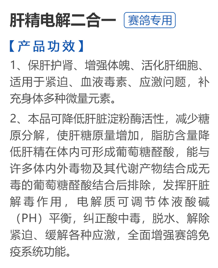 2026线上春展▪满200-10  -  指定商品:【爆灯】蓝精零 5克×10包 ;【爆灯】鸽滴威 5克×10包 ;【爆灯】莎门停 5克×10包 ;【爆灯】崇威灵 5克×10包 体内虫;【爆灯】益南混甘 5克×10包 ;【爆灯】回利球 5克×10包 ;【心连心】滴莎 10克×6袋;【爆灯】乎滴亢 5克×10包 ;【爆灯】超浓缩喜乐菌 500毫升 ;【心连心】球莎 10克×6袋 ;【爆灯】维诺护肝精 250毫升 ;【爆灯】虱螨体虫清 500毫升 ;【心连心】呼畅 10克×6袋 ;【爆灯】球可定 100毫升 ;【爆灯】复合预混合饲料Ⅱ维益菌 227克 ;【心连心】瘟痢停 10克×6袋 ;【爆灯】肠道宝 500克 ;【心连心】莎J净 10克×6袋 ;【心连心】鸽C净 10克×6袋 ;【顶峰】复合菌(胶囊)100粒 ;【顶峰】复合菌(粉剂) 280克 ;【顶峰】能量钙(浓缩型) 400毫升 ;【爱丽丝】喉痢清(加强型) 60粒(胶囊) ;【顶峰】能量钙(浓缩型) 2.5升 ;【爱丽丝】衣元净 60粒(胶囊);【施德福】特号六合一混合剂 5克×10包 ;【爱丽丝】毛滴虫净 60粒(胶囊);【爱丽丝】刹杆净(原沙门氏菌大肠杆菌杀星) 60粒(胶囊);【施德福】口服苗A 5克×10包 ;【爱丽丝】肝精 5克×10袋 ;【施德福】卡尼丁肝肾液 250毫升 ;【施德福】精华液 250毫升 ;【爱丽丝】呼吸道特号 60粒 (胶囊) ;【施德福】口服苗液 25毫升 ;【天津版稳拿】稳拿一号(呼吸道) 2公克×8袋 呼吸道;【天津版稳拿】稳拿二号(消化肠道) 3公克×8袋 肠道;【天津版稳拿】稳拿七号(毛滴虫) 2公克×8袋 毛滴虫;【上海龙园】魔宝 1000克 袋装;【上海龙园】维他肝精 250毫升 ;【上海龙园】鸽绿茶 100克 ;【上海龙园】浴宝 200克 ;【上海龙园】小育雏宝胶囊 100粒 ;【上海龙园】菌乐多 500毫升;【先锋】呼喉霸 5克×10包;【先锋】依原净 5克×10包 ;【西安凯鸽】客线枉 30毫升;【西安凯鸽】至樽独霸 100克;【西安凯鸽】至樽独霸 60粒(胶囊);【爆灯】T5鸽疫快克 20毫升 ;【西安凯鸽】果蔬营养丸 700克;【西安凯鸽】果蔬营养丸 2000克;【天津版稳拿】稳拿三号 2克×8包 球虫;【天津版稳拿】幼鸽夺霸 100粒 ;【天津版稳拿】幼鸽夺霸 300粒 ;【天津版稳拿】比赛夺霸3号 100粒 ;【天津版稳拿】比赛夺霸3号 300粒 ;【心连心】毛莎胶囊 60粒 ;【心连心】球锋胶囊 60粒 ;【天津版稳拿】虫清 3克×8包 体内虫;【心连心】呼畅 60粒(胶囊) ;【天津版稳拿】喉清 3克×8包 支原体/衣原体/念珠菌/呼吸道;【心连心】瘟痢停 60粒(胶囊) ;【天津版稳拿】粮霉清 200克 ;【心连心】莎J净胶囊 60粒 ;【爆灯】一滴灵 10毫升 单眼伤风;【爆灯】呼鼻灵 10毫升 ;【心连心】鸽C净 60粒(胶囊) ;【爆灯】维诺速补 100粒 ;【爆灯】老鸟回春丸 100粒 ;【心连心】毛呼二合一 10克×6袋;【爆灯】老鸟生子丸 100粒;【爆灯】依圆青 5克×10袋 ;【心连心】百消砃 100丸 ;【爆灯】泰力福 5克×10袋 呼吸道;【心连心】百消潵 150克 ;【爆灯】卫康防火墙 500毫升 ;【爆灯】矿力高峰液 250毫升;【心连心】独利双清 250毫升 ;【心连心】二合一啤酒酵母粉 600克 ;【爆灯】钙力奇 250毫升;【心连心】益酶多维电解质 150克 ;【爆灯】本草亢独饮 250毫升 ;【心连心】强化肝精(粉剂) 10克×10袋 ;【先锋】呼爽先锋 5克×10包 ;【心连心】强化肝精浓缩液 120毫升 ;【先锋】呼毛二合一 5克×10包 ;李猛推荐【爆灯】鸽疫康 500毫升 ;【先锋】先锋三合一 5克×10包 球虫/毛滴虫/沙门氏;【心连心】生物多肽矿物磷钙粉 500克 ;【先锋】净滴先锋 5克×10包;【心连心】AM活菌浓缩液 500毫升 ;【先锋】不脱翼 5毫升;李猛推荐【爆灯】维诺保 100毫升 ;【心连心】多效营养精华素 1680克 ;【心连心】AD3磷钙液 250毫升 ;【爆灯】超能素5000 1500克袋装 ;【心连心】瘟痢停丸 60丸 ;【爆灯】复合预混合饲料/6合1能量营养素 250克 ;【心连心】优益活菌液 1000毫升 ;【爱丽丝】喉痢清 5克×10袋 ;【上海龙园】种鸽宝 300粒 ;【上海龙园】种鸽粉 200克 ;【爱丽丝】衣原净2代 5克×10袋 ;【上海龙园】一喷灵 25毫升 ;【爱丽丝】毛滴净 5克×10袋 ;【上海龙园】绿色精 500毫升;【爱丽丝】刹杆净(原沙门氏菌大肠杆菌杀星) 5克×10袋 ;【上海龙园】营养蒜油 200毫升;【爱丽丝】呼吸道特号 5克×10袋 ;【上海龙园】康飞力 200毫升;【顶峰】保比液 100毫升 ;【上海龙园】赛神滴眼液 10毫升 ;【爱丽丝】毛球二合一 5克×10袋 ;【上海龙园】一滴灵 10毫升 单眼伤风;【爱丽丝】毛滴虫球虫二合一 60粒 ;【上海龙园】泻必停 5克×10袋 ;【顶峰】牛至香酚保比液 500毫升 ;【上海龙园】喉必清 5克×10袋;【顶峰】商寒停 100片 伤寒停;【顶峰】能量钙 300克 ;【上海龙园】抗球粉 5克×10包;【爱丽丝】稳肠赢 100克 ;【顶峰】全能电解质 500毫升 ;【上海龙园】抗滴粉 5克×10包 ;【顶峰】维他酵母粉 800克 ;【上海龙园】电解质维生素C粉 (甲7.5克+乙12.5克)×10组盒;【上海龙园】小育雏宝片剂 100片;【上海龙园】大育雏宝胶囊 500粒;【上海龙园】嗉囊清 100毫升;【上海龙园】大育雏宝片剂 500片;【上海龙园】粒粒成 100粒;【上海龙园】克虫宝 80粒;【上海龙园】红茶 100克;【上海龙园】强健宝 750克;【凡赛尔】欧乐强 鸽浴粉 1000克 天然沐浴圣品/消除肌肉疲劳/洗澡/洗浴;【爱丽丝】钙磷营养速补 400片;【北斗】雌宝 100粒;【北斗】雄宝 100粒 ;【北斗】克立停 100粒;【北斗】育雏宝 300粒;【天津版稳拿】稳拿五号 3克×8包 单眼伤风;【爆灯】多关秘密武器 30毫升 ;【爆灯】维诺