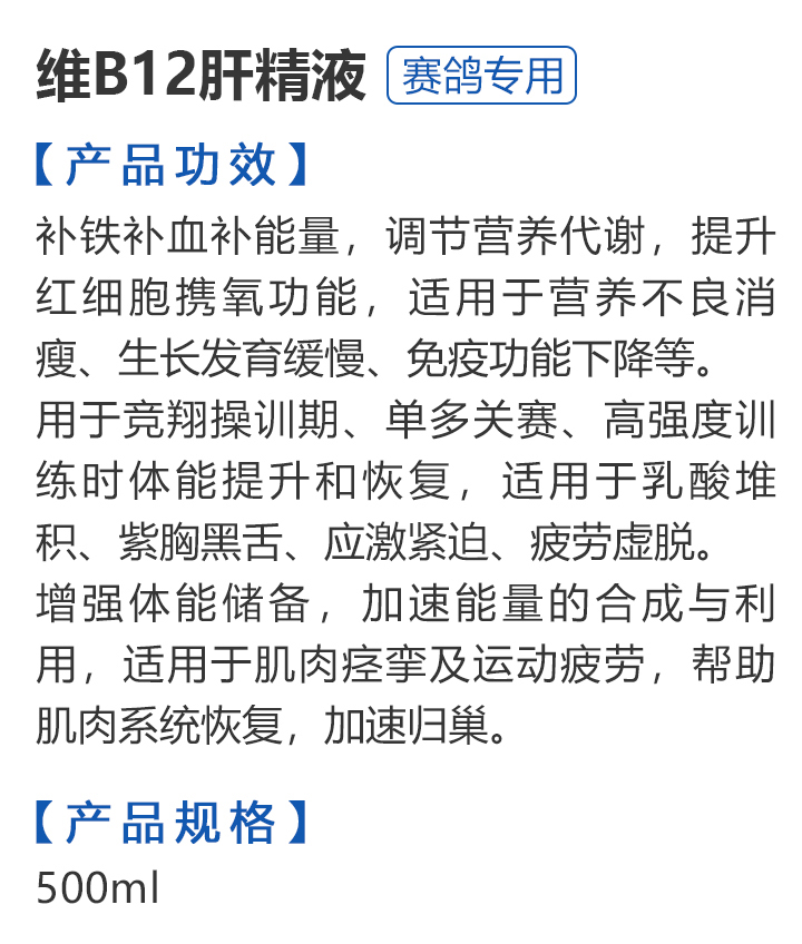 2026线上春展▪6元无门槛  -  指定商品:【爆灯】蓝精零 5克×10包 ;【爆灯】鸽滴威 5克×10包 ;【爆灯】莎门停 5克×10包 ;【爆灯】崇威灵 5克×10包 体内虫;【爆灯】益南混甘 5克×10包 ;【爆灯】回利球 5克×10包 ;【心连心】滴莎 10克×6袋;【爆灯】乎滴亢 5克×10包 ;【爆灯】超浓缩喜乐菌 500毫升 ;【心连心】球莎 10克×6袋 ;【爆灯】维诺护肝精 250毫升 ;【爆灯】虱螨体虫清 500毫升 ;【心连心】呼畅 10克×6袋 ;【爆灯】球可定 100毫升 ;【爆灯】复合预混合饲料Ⅱ维益菌 227克 ;【心连心】瘟痢停 10克×6袋 ;【爆灯】肠道宝 500克 ;【心连心】莎J净 10克×6袋 ;【心连心】鸽C净 10克×6袋 ;【顶峰】复合菌(胶囊)100粒 ;【顶峰】复合菌(粉剂) 280克 ;【顶峰】能量钙(浓缩型) 400毫升 ;【爱丽丝】喉痢清(加强型) 60粒(胶囊) ;【顶峰】能量钙(浓缩型) 2.5升 ;【爱丽丝】衣元净 60粒(胶囊);【施德福】特号六合一混合剂 5克×10包 ;【爱丽丝】毛滴虫净 60粒(胶囊);【爱丽丝】刹杆净(原沙门氏菌大肠杆菌杀星) 60粒(胶囊);【施德福】口服苗A 5克×10包 ;【爱丽丝】肝精 5克×10袋 ;【施德福】卡尼丁肝肾液 250毫升 ;【施德福】精华液 250毫升 ;【爱丽丝】呼吸道特号 60粒 (胶囊) ;【施德福】口服苗液 25毫升 ;【天津版稳拿】稳拿一号(呼吸道) 2公克×8袋 呼吸道;【天津版稳拿】稳拿二号(消化肠道) 3公克×8袋 肠道;【天津版稳拿】稳拿七号(毛滴虫) 2公克×8袋 毛滴虫;【上海龙园】魔宝 1000克 袋装;【上海龙园】维他肝精 250毫升 ;【上海龙园】鸽绿茶 100克 ;【上海龙园】浴宝 200克 ;【上海龙园】小育雏宝胶囊 100粒 ;【上海龙园】菌乐多 500毫升;【先锋】呼喉霸 5克×10包;【先锋】依原净 5克×10包 ;【西安凯鸽】客线枉 30毫升;【西安凯鸽】至樽独霸 100克;【西安凯鸽】至樽独霸 60粒(胶囊);【爆灯】T5鸽疫快克 20毫升 ;【西安凯鸽】果蔬营养丸 700克;【西安凯鸽】果蔬营养丸 2000克;【天津版稳拿】稳拿三号 2克×8包 球虫;【天津版稳拿】幼鸽夺霸 100粒 ;【天津版稳拿】幼鸽夺霸 300粒 ;【天津版稳拿】比赛夺霸3号 100粒 ;【天津版稳拿】比赛夺霸3号 300粒 ;【心连心】毛莎胶囊 60粒 ;【心连心】球锋胶囊 60粒 ;【天津版稳拿】虫清 3克×8包 体内虫;【心连心】呼畅 60粒(胶囊) ;【天津版稳拿】喉清 3克×8包 支原体/衣原体/念珠菌/呼吸道;【心连心】瘟痢停 60粒(胶囊) ;【天津版稳拿】粮霉清 200克 ;【心连心】莎J净胶囊 60粒 ;【爆灯】一滴灵 10毫升 单眼伤风;【爆灯】呼鼻灵 10毫升 ;【心连心】鸽C净 60粒(胶囊) ;【爆灯】维诺速补 100粒 ;【爆灯】老鸟回春丸 100粒 ;【心连心】毛呼二合一 10克×6袋;【爆灯】老鸟生子丸 100粒;【爆灯】依圆青 5克×10袋 ;【心连心】百消砃 100丸 ;【爆灯】泰力福 5克×10袋 呼吸道;【心连心】百消潵 150克 ;【爆灯】卫康防火墙 500毫升 ;【爆灯】矿力高峰液 250毫升;【心连心】独利双清 250毫升 ;【心连心】二合一啤酒酵母粉 600克 ;【爆灯】钙力奇 250毫升;【心连心】益酶多维电解质 150克 ;【爆灯】本草亢独饮 250毫升 ;【心连心】强化肝精(粉剂) 10克×10袋 ;【先锋】呼爽先锋 5克×10包 ;【心连心】强化肝精浓缩液 120毫升 ;【先锋】呼毛二合一 5克×10包 ;李猛推荐【爆灯】鸽疫康 500毫升 ;【先锋】先锋三合一 5克×10包 球虫/毛滴虫/沙门氏;【心连心】生物多肽矿物磷钙粉 500克 ;【先锋】净滴先锋 5克×10包;【心连心】AM活菌浓缩液 500毫升 ;【先锋】不脱翼 5毫升;李猛推荐【爆灯】维诺保 100毫升 ;【心连心】多效营养精华素 1680克 ;【心连心】AD3磷钙液 250毫升 ;【爆灯】超能素5000 1500克袋装 ;【心连心】瘟痢停丸 60丸 ;【爆灯】复合预混合饲料/6合1能量营养素 250克 ;【心连心】优益活菌液 1000毫升 ;【爱丽丝】喉痢清 5克×10袋 ;【上海龙园】种鸽宝 300粒 ;【上海龙园】种鸽粉 200克 ;【爱丽丝】衣原净2代 5克×10袋 ;【上海龙园】一喷灵 25毫升 ;【爱丽丝】毛滴净 5克×10袋 ;【上海龙园】绿色精 500毫升;【爱丽丝】刹杆净(原沙门氏菌大肠杆菌杀星) 5克×10袋 ;【上海龙园】营养蒜油 200毫升;【爱丽丝】呼吸道特号 5克×10袋 ;【上海龙园】康飞力 200毫升;【顶峰】保比液 100毫升 ;【上海龙园】赛神滴眼液 10毫升 ;【爱丽丝】毛球二合一 5克×10袋 ;【上海龙园】一滴灵 10毫升 单眼伤风;【爱丽丝】毛滴虫球虫二合一 60粒 ;【上海龙园】泻必停 5克×10袋 ;【顶峰】牛至香酚保比液 500毫升 ;【上海龙园】喉必清 5克×10袋;【顶峰】商寒停 100片 伤寒停;【顶峰】能量钙 300克 ;【上海龙园】抗球粉 5克×10包;【爱丽丝】稳肠赢 100克 ;【顶峰】全能电解质 500毫升 ;【上海龙园】抗滴粉 5克×10包 ;【顶峰】维他酵母粉 800克 ;【上海龙园】电解质维生素C粉 (甲7.5克+乙12.5克)×10组盒;【上海龙园】小育雏宝片剂 100片;【上海龙园】大育雏宝胶囊 500粒;【上海龙园】嗉囊清 100毫升;【上海龙园】大育雏宝片剂 500片;【上海龙园】粒粒成 100粒;【上海龙园】克虫宝 80粒;【上海龙园】红茶 100克;【上海龙园】强健宝 750克;【凡赛尔】欧乐强 鸽浴粉 1000克 天然沐浴圣品/消除肌肉疲劳/洗澡/洗浴;【爱丽丝】钙磷营养速补 400片;【北斗】雌宝 100粒;【北斗】雄宝 100粒 ;【北斗】克立停 100粒;【北斗】育雏宝 300粒;【天津版稳拿】稳拿五号 3克×8包 单眼伤风;【爆灯】多关秘密武器 30毫升 ;【爆灯】