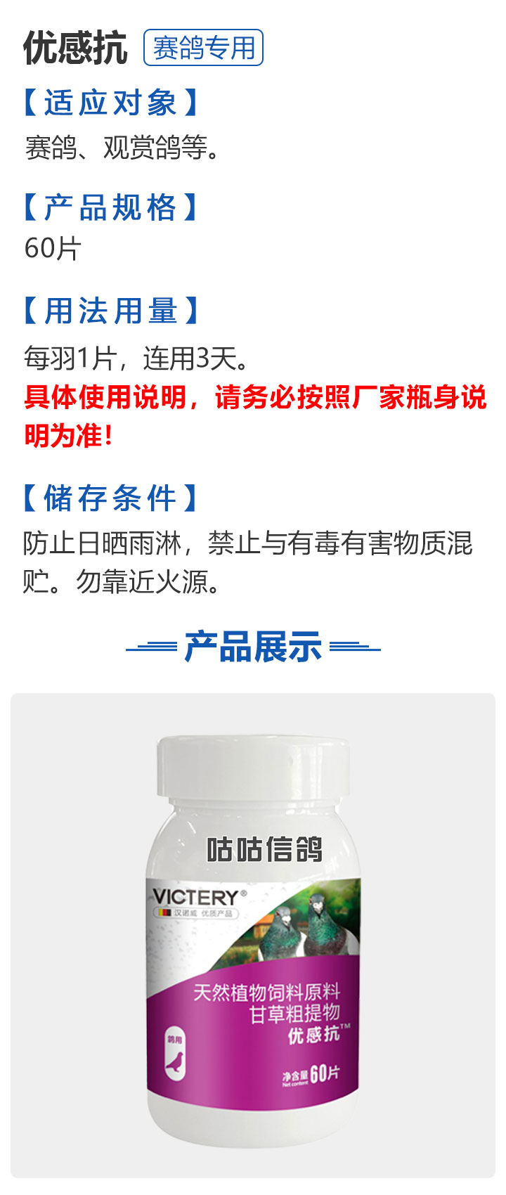 2026线上春展▪6元无门槛  -  指定商品:【爆灯】蓝精零 5克×10包 ;【爆灯】鸽滴威 5克×10包 ;【爆灯】莎门停 5克×10包 ;【爆灯】崇威灵 5克×10包 体内虫;【爆灯】益南混甘 5克×10包 ;【爆灯】回利球 5克×10包 ;【心连心】滴莎 10克×6袋;【爆灯】乎滴亢 5克×10包 ;【爆灯】超浓缩喜乐菌 500毫升 ;【心连心】球莎 10克×6袋 ;【爆灯】维诺护肝精 250毫升 ;【爆灯】虱螨体虫清 500毫升 ;【心连心】呼畅 10克×6袋 ;【爆灯】球可定 100毫升 ;【爆灯】复合预混合饲料Ⅱ维益菌 227克 ;【心连心】瘟痢停 10克×6袋 ;【爆灯】肠道宝 500克 ;【心连心】莎J净 10克×6袋 ;【心连心】鸽C净 10克×6袋 ;【顶峰】复合菌(胶囊)100粒 ;【顶峰】复合菌(粉剂) 280克 ;【顶峰】能量钙(浓缩型) 400毫升 ;【爱丽丝】喉痢清(加强型) 60粒(胶囊) ;【顶峰】能量钙(浓缩型) 2.5升 ;【爱丽丝】衣元净 60粒(胶囊);【施德福】特号六合一混合剂 5克×10包 ;【爱丽丝】毛滴虫净 60粒(胶囊);【爱丽丝】刹杆净(原沙门氏菌大肠杆菌杀星) 60粒(胶囊);【施德福】口服苗A 5克×10包 ;【爱丽丝】肝精 5克×10袋 ;【施德福】卡尼丁肝肾液 250毫升 ;【施德福】精华液 250毫升 ;【爱丽丝】呼吸道特号 60粒 (胶囊) ;【施德福】口服苗液 25毫升 ;【天津版稳拿】稳拿一号(呼吸道) 2公克×8袋 呼吸道;【天津版稳拿】稳拿二号(消化肠道) 3公克×8袋 肠道;【天津版稳拿】稳拿七号(毛滴虫) 2公克×8袋 毛滴虫;【上海龙园】魔宝 1000克 袋装;【上海龙园】维他肝精 250毫升 ;【上海龙园】鸽绿茶 100克 ;【上海龙园】浴宝 200克 ;【上海龙园】小育雏宝胶囊 100粒 ;【上海龙园】菌乐多 500毫升;【先锋】呼喉霸 5克×10包;【先锋】依原净 5克×10包 ;【西安凯鸽】客线枉 30毫升;【西安凯鸽】至樽独霸 100克;【西安凯鸽】至樽独霸 60粒(胶囊);【爆灯】T5鸽疫快克 20毫升 ;【西安凯鸽】果蔬营养丸 700克;【西安凯鸽】果蔬营养丸 2000克;【天津版稳拿】稳拿三号 2克×8包 球虫;【天津版稳拿】幼鸽夺霸 100粒 ;【天津版稳拿】幼鸽夺霸 300粒 ;【天津版稳拿】比赛夺霸3号 100粒 ;【天津版稳拿】比赛夺霸3号 300粒 ;【心连心】毛莎胶囊 60粒 ;【心连心】球锋胶囊 60粒 ;【天津版稳拿】虫清 3克×8包 体内虫;【心连心】呼畅 60粒(胶囊) ;【天津版稳拿】喉清 3克×8包 支原体/衣原体/念珠菌/呼吸道;【心连心】瘟痢停 60粒(胶囊) ;【天津版稳拿】粮霉清 200克 ;【心连心】莎J净胶囊 60粒 ;【爆灯】一滴灵 10毫升 单眼伤风;【爆灯】呼鼻灵 10毫升 ;【心连心】鸽C净 60粒(胶囊) ;【爆灯】维诺速补 100粒 ;【爆灯】老鸟回春丸 100粒 ;【心连心】毛呼二合一 10克×6袋;【爆灯】老鸟生子丸 100粒;【爆灯】依圆青 5克×10袋 ;【心连心】百消砃 100丸 ;【爆灯】泰力福 5克×10袋 呼吸道;【心连心】百消潵 150克 ;【爆灯】卫康防火墙 500毫升 ;【爆灯】矿力高峰液 250毫升;【心连心】独利双清 250毫升 ;【心连心】二合一啤酒酵母粉 600克 ;【爆灯】钙力奇 250毫升;【心连心】益酶多维电解质 150克 ;【爆灯】本草亢独饮 250毫升 ;【心连心】强化肝精(粉剂) 10克×10袋 ;【先锋】呼爽先锋 5克×10包 ;【心连心】强化肝精浓缩液 120毫升 ;【先锋】呼毛二合一 5克×10包 ;李猛推荐【爆灯】鸽疫康 500毫升 ;【先锋】先锋三合一 5克×10包 球虫/毛滴虫/沙门氏;【心连心】生物多肽矿物磷钙粉 500克 ;【先锋】净滴先锋 5克×10包;【心连心】AM活菌浓缩液 500毫升 ;【先锋】不脱翼 5毫升;李猛推荐【爆灯】维诺保 100毫升 ;【心连心】多效营养精华素 1680克 ;【心连心】AD3磷钙液 250毫升 ;【爆灯】超能素5000 1500克袋装 ;【心连心】瘟痢停丸 60丸 ;【爆灯】复合预混合饲料/6合1能量营养素 250克 ;【心连心】优益活菌液 1000毫升 ;【爱丽丝】喉痢清 5克×10袋 ;【上海龙园】种鸽宝 300粒 ;【上海龙园】种鸽粉 200克 ;【爱丽丝】衣原净2代 5克×10袋 ;【上海龙园】一喷灵 25毫升 ;【爱丽丝】毛滴净 5克×10袋 ;【上海龙园】绿色精 500毫升;【爱丽丝】刹杆净(原沙门氏菌大肠杆菌杀星) 5克×10袋 ;【上海龙园】营养蒜油 200毫升;【爱丽丝】呼吸道特号 5克×10袋 ;【上海龙园】康飞力 200毫升;【顶峰】保比液 100毫升 ;【上海龙园】赛神滴眼液 10毫升 ;【爱丽丝】毛球二合一 5克×10袋 ;【上海龙园】一滴灵 10毫升 单眼伤风;【爱丽丝】毛滴虫球虫二合一 60粒 ;【上海龙园】泻必停 5克×10袋 ;【顶峰】牛至香酚保比液 500毫升 ;【上海龙园】喉必清 5克×10袋;【顶峰】商寒停 100片 伤寒停;【顶峰】能量钙 300克 ;【上海龙园】抗球粉 5克×10包;【爱丽丝】稳肠赢 100克 ;【顶峰】全能电解质 500毫升 ;【上海龙园】抗滴粉 5克×10包 ;【顶峰】维他酵母粉 800克 ;【上海龙园】电解质维生素C粉 (甲7.5克+乙12.5克)×10组盒;【上海龙园】小育雏宝片剂 100片;【上海龙园】大育雏宝胶囊 500粒;【上海龙园】嗉囊清 100毫升;【上海龙园】大育雏宝片剂 500片;【上海龙园】粒粒成 100粒;【上海龙园】克虫宝 80粒;【上海龙园】红茶 100克;【上海龙园】强健宝 750克;【凡赛尔】欧乐强 鸽浴粉 1000克 天然沐浴圣品/消除肌肉疲劳/洗澡/洗浴;【爱丽丝】钙磷营养速补 400片;【北斗】雌宝 100粒;【北斗】雄宝 100粒 ;【北斗】克立停 100粒;【北斗】育雏宝 300粒;【天津版稳拿】稳拿五号 3克×8包 单眼伤风;【爆灯】多关秘密武器 30毫升 ;【爆灯】