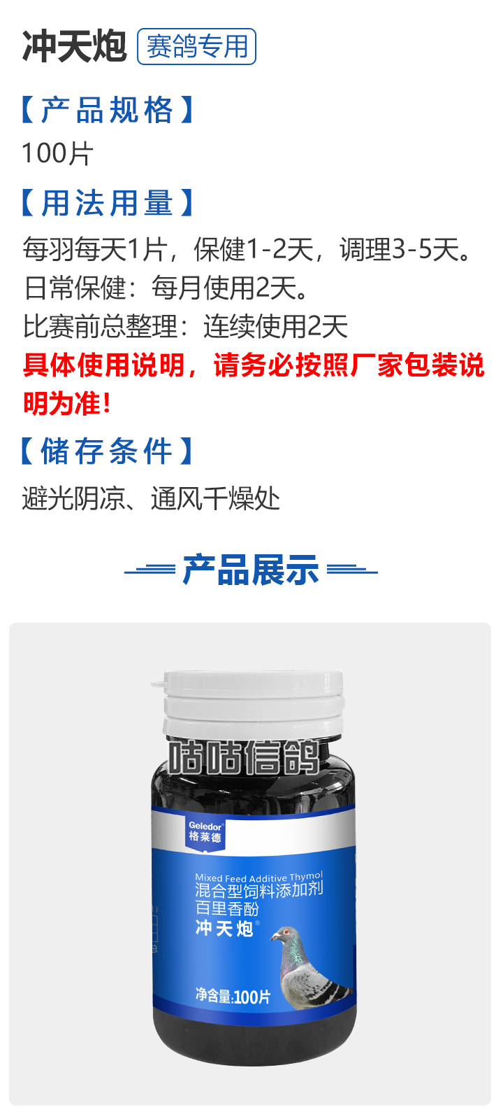 2026线上春展▪6元无门槛  -  指定商品:【爆灯】蓝精零 5克×10包 ;【爆灯】鸽滴威 5克×10包 ;【爆灯】莎门停 5克×10包 ;【爆灯】崇威灵 5克×10包 体内虫;【爆灯】益南混甘 5克×10包 ;【爆灯】回利球 5克×10包 ;【心连心】滴莎 10克×6袋;【爆灯】乎滴亢 5克×10包 ;【爆灯】超浓缩喜乐菌 500毫升 ;【心连心】球莎 10克×6袋 ;【爆灯】维诺护肝精 250毫升 ;【爆灯】虱螨体虫清 500毫升 ;【心连心】呼畅 10克×6袋 ;【爆灯】球可定 100毫升 ;【爆灯】复合预混合饲料Ⅱ维益菌 227克 ;【心连心】瘟痢停 10克×6袋 ;【爆灯】肠道宝 500克 ;【心连心】莎J净 10克×6袋 ;【心连心】鸽C净 10克×6袋 ;【顶峰】复合菌(胶囊)100粒 ;【顶峰】复合菌(粉剂) 280克 ;【顶峰】能量钙(浓缩型) 400毫升 ;【爱丽丝】喉痢清(加强型) 60粒(胶囊) ;【顶峰】能量钙(浓缩型) 2.5升 ;【爱丽丝】衣元净 60粒(胶囊);【施德福】特号六合一混合剂 5克×10包 ;【爱丽丝】毛滴虫净 60粒(胶囊);【爱丽丝】刹杆净(原沙门氏菌大肠杆菌杀星) 60粒(胶囊);【施德福】口服苗A 5克×10包 ;【爱丽丝】肝精 5克×10袋 ;【施德福】卡尼丁肝肾液 250毫升 ;【施德福】精华液 250毫升 ;【爱丽丝】呼吸道特号 60粒 (胶囊) ;【施德福】口服苗液 25毫升 ;【天津版稳拿】稳拿一号(呼吸道) 2公克×8袋 呼吸道;【天津版稳拿】稳拿二号(消化肠道) 3公克×8袋 肠道;【天津版稳拿】稳拿七号(毛滴虫) 2公克×8袋 毛滴虫;【上海龙园】魔宝 1000克 袋装;【上海龙园】维他肝精 250毫升 ;【上海龙园】鸽绿茶 100克 ;【上海龙园】浴宝 200克 ;【上海龙园】小育雏宝胶囊 100粒 ;【上海龙园】菌乐多 500毫升;【先锋】呼喉霸 5克×10包;【先锋】依原净 5克×10包 ;【西安凯鸽】客线枉 30毫升;【西安凯鸽】至樽独霸 100克;【西安凯鸽】至樽独霸 60粒(胶囊);【爆灯】T5鸽疫快克 20毫升 ;【西安凯鸽】果蔬营养丸 700克;【西安凯鸽】果蔬营养丸 2000克;【天津版稳拿】稳拿三号 2克×8包 球虫;【天津版稳拿】幼鸽夺霸 100粒 ;【天津版稳拿】幼鸽夺霸 300粒 ;【天津版稳拿】比赛夺霸3号 100粒 ;【天津版稳拿】比赛夺霸3号 300粒 ;【心连心】毛莎胶囊 60粒 ;【心连心】球锋胶囊 60粒 ;【天津版稳拿】虫清 3克×8包 体内虫;【心连心】呼畅 60粒(胶囊) ;【天津版稳拿】喉清 3克×8包 支原体/衣原体/念珠菌/呼吸道;【心连心】瘟痢停 60粒(胶囊) ;【天津版稳拿】粮霉清 200克 ;【心连心】莎J净胶囊 60粒 ;【爆灯】一滴灵 10毫升 单眼伤风;【爆灯】呼鼻灵 10毫升 ;【心连心】鸽C净 60粒(胶囊) ;【爆灯】维诺速补 100粒 ;【爆灯】老鸟回春丸 100粒 ;【心连心】毛呼二合一 10克×6袋;【爆灯】老鸟生子丸 100粒;【爆灯】依圆青 5克×10袋 ;【心连心】百消砃 100丸 ;【爆灯】泰力福 5克×10袋 呼吸道;【心连心】百消潵 150克 ;【爆灯】卫康防火墙 500毫升 ;【爆灯】矿力高峰液 250毫升;【心连心】独利双清 250毫升 ;【心连心】二合一啤酒酵母粉 600克 ;【爆灯】钙力奇 250毫升;【心连心】益酶多维电解质 150克 ;【爆灯】本草亢独饮 250毫升 ;【心连心】强化肝精(粉剂) 10克×10袋 ;【先锋】呼爽先锋 5克×10包 ;【心连心】强化肝精浓缩液 120毫升 ;【先锋】呼毛二合一 5克×10包 ;李猛推荐【爆灯】鸽疫康 500毫升 ;【先锋】先锋三合一 5克×10包 球虫/毛滴虫/沙门氏;【心连心】生物多肽矿物磷钙粉 500克 ;【先锋】净滴先锋 5克×10包;【心连心】AM活菌浓缩液 500毫升 ;【先锋】不脱翼 5毫升;李猛推荐【爆灯】维诺保 100毫升 ;【心连心】多效营养精华素 1680克 ;【心连心】AD3磷钙液 250毫升 ;【爆灯】超能素5000 1500克袋装 ;【心连心】瘟痢停丸 60丸 ;【爆灯】复合预混合饲料/6合1能量营养素 250克 ;【心连心】优益活菌液 1000毫升 ;【爱丽丝】喉痢清 5克×10袋 ;【上海龙园】种鸽宝 300粒 ;【上海龙园】种鸽粉 200克 ;【爱丽丝】衣原净2代 5克×10袋 ;【上海龙园】一喷灵 25毫升 ;【爱丽丝】毛滴净 5克×10袋 ;【上海龙园】绿色精 500毫升;【爱丽丝】刹杆净(原沙门氏菌大肠杆菌杀星) 5克×10袋 ;【上海龙园】营养蒜油 200毫升;【爱丽丝】呼吸道特号 5克×10袋 ;【上海龙园】康飞力 200毫升;【顶峰】保比液 100毫升 ;【上海龙园】赛神滴眼液 10毫升 ;【爱丽丝】毛球二合一 5克×10袋 ;【上海龙园】一滴灵 10毫升 单眼伤风;【爱丽丝】毛滴虫球虫二合一 60粒 ;【上海龙园】泻必停 5克×10袋 ;【顶峰】牛至香酚保比液 500毫升 ;【上海龙园】喉必清 5克×10袋;【顶峰】商寒停 100片 伤寒停;【顶峰】能量钙 300克 ;【上海龙园】抗球粉 5克×10包;【爱丽丝】稳肠赢 100克 ;【顶峰】全能电解质 500毫升 ;【上海龙园】抗滴粉 5克×10包 ;【顶峰】维他酵母粉 800克 ;【上海龙园】电解质维生素C粉 (甲7.5克+乙12.5克)×10组盒;【上海龙园】小育雏宝片剂 100片;【上海龙园】大育雏宝胶囊 500粒;【上海龙园】嗉囊清 100毫升;【上海龙园】大育雏宝片剂 500片;【上海龙园】粒粒成 100粒;【上海龙园】克虫宝 80粒;【上海龙园】红茶 100克;【上海龙园】强健宝 750克;【凡赛尔】欧乐强 鸽浴粉 1000克 天然沐浴圣品/消除肌肉疲劳/洗澡/洗浴;【爱丽丝】钙磷营养速补 400片;【北斗】雌宝 100粒;【北斗】雄宝 100粒 ;【北斗】克立停 100粒;【北斗】育雏宝 300粒;【天津版稳拿】稳拿五号 3克×8包 单眼伤风;【爆灯】多关秘密武器 30毫升 ;【爆灯】