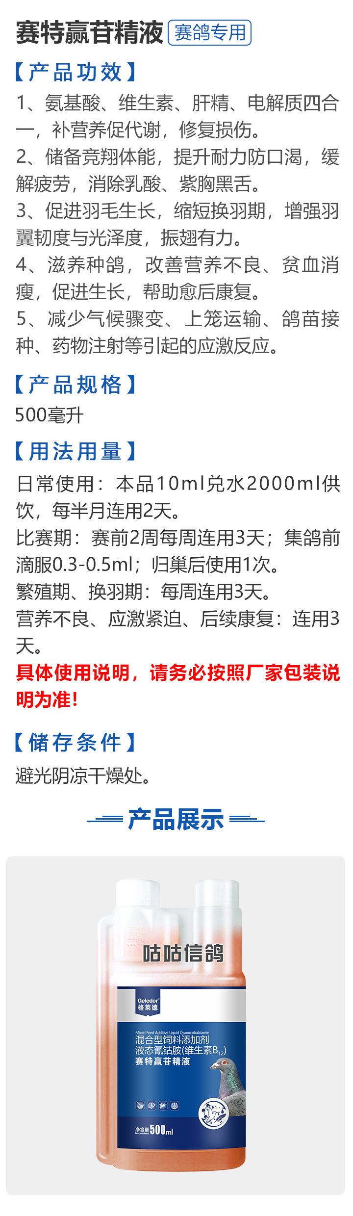 2026线上春展▪满600-40  -  指定商品:【爆灯】蓝精零 5克×10包 ;【爆灯】鸽滴威 5克×10包 ;【爆灯】莎门停 5克×10包 ;【爆灯】崇威灵 5克×10包 体内虫;【爆灯】益南混甘 5克×10包 ;【爆灯】回利球 5克×10包 ;【心连心】滴莎 10克×6袋;【爆灯】乎滴亢 5克×10包 ;【爆灯】超浓缩喜乐菌 500毫升 ;【心连心】球莎 10克×6袋 ;【爆灯】维诺护肝精 250毫升 ;【爆灯】虱螨体虫清 500毫升 ;【心连心】呼畅 10克×6袋 ;【爆灯】球可定 100毫升 ;【爆灯】复合预混合饲料Ⅱ维益菌 227克 ;【心连心】瘟痢停 10克×6袋 ;【爆灯】肠道宝 500克 ;【心连心】莎J净 10克×6袋 ;【心连心】鸽C净 10克×6袋 ;【顶峰】复合菌(胶囊)100粒 ;【顶峰】复合菌(粉剂) 280克 ;【顶峰】能量钙(浓缩型) 400毫升 ;【爱丽丝】喉痢清(加强型) 60粒(胶囊) ;【顶峰】能量钙(浓缩型) 2.5升 ;【爱丽丝】衣元净 60粒(胶囊);【施德福】特号六合一混合剂 5克×10包 ;【爱丽丝】毛滴虫净 60粒(胶囊);【爱丽丝】刹杆净(原沙门氏菌大肠杆菌杀星) 60粒(胶囊);【施德福】口服苗A 5克×10包 ;【爱丽丝】肝精 5克×10袋 ;【施德福】卡尼丁肝肾液 250毫升 ;【施德福】精华液 250毫升 ;【爱丽丝】呼吸道特号 60粒 (胶囊) ;【施德福】口服苗液 25毫升 ;【天津版稳拿】稳拿一号(呼吸道) 2公克×8袋 呼吸道;【天津版稳拿】稳拿二号(消化肠道) 3公克×8袋 肠道;【天津版稳拿】稳拿七号(毛滴虫) 2公克×8袋 毛滴虫;【上海龙园】魔宝 1000克 袋装;【上海龙园】维他肝精 250毫升 ;【上海龙园】鸽绿茶 100克 ;【上海龙园】浴宝 200克 ;【上海龙园】小育雏宝胶囊 100粒 ;【上海龙园】菌乐多 500毫升;【先锋】呼喉霸 5克×10包;【先锋】依原净 5克×10包 ;【西安凯鸽】客线枉 30毫升;【西安凯鸽】至樽独霸 100克;【西安凯鸽】至樽独霸 60粒(胶囊);【爆灯】T5鸽疫快克 20毫升 ;【西安凯鸽】果蔬营养丸 700克;【西安凯鸽】果蔬营养丸 2000克;【天津版稳拿】稳拿三号 2克×8包 球虫;【天津版稳拿】幼鸽夺霸 100粒 ;【天津版稳拿】幼鸽夺霸 300粒 ;【天津版稳拿】比赛夺霸3号 100粒 ;【天津版稳拿】比赛夺霸3号 300粒 ;【心连心】毛莎胶囊 60粒 ;【心连心】球锋胶囊 60粒 ;【天津版稳拿】虫清 3克×8包 体内虫;【心连心】呼畅 60粒(胶囊) ;【天津版稳拿】喉清 3克×8包 支原体/衣原体/念珠菌/呼吸道;【心连心】瘟痢停 60粒(胶囊) ;【天津版稳拿】粮霉清 200克 ;【心连心】莎J净胶囊 60粒 ;【爆灯】一滴灵 10毫升 单眼伤风;【爆灯】呼鼻灵 10毫升 ;【心连心】鸽C净 60粒(胶囊) ;【爆灯】维诺速补 100粒 ;【爆灯】老鸟回春丸 100粒 ;【心连心】毛呼二合一 10克×6袋;【爆灯】老鸟生子丸 100粒;【爆灯】依圆青 5克×10袋 ;【心连心】百消砃 100丸 ;【爆灯】泰力福 5克×10袋 呼吸道;【心连心】百消潵 150克 ;【爆灯】卫康防火墙 500毫升 ;【爆灯】矿力高峰液 250毫升;【心连心】独利双清 250毫升 ;【心连心】二合一啤酒酵母粉 600克 ;【爆灯】钙力奇 250毫升;【心连心】益酶多维电解质 150克 ;【爆灯】本草亢独饮 250毫升 ;【心连心】强化肝精(粉剂) 10克×10袋 ;【先锋】呼爽先锋 5克×10包 ;【心连心】强化肝精浓缩液 120毫升 ;【先锋】呼毛二合一 5克×10包 ;李猛推荐【爆灯】鸽疫康 500毫升 ;【先锋】先锋三合一 5克×10包 球虫/毛滴虫/沙门氏;【心连心】生物多肽矿物磷钙粉 500克 ;【先锋】净滴先锋 5克×10包;【心连心】AM活菌浓缩液 500毫升 ;【先锋】不脱翼 5毫升;李猛推荐【爆灯】维诺保 100毫升 ;【心连心】多效营养精华素 1680克 ;【心连心】AD3磷钙液 250毫升 ;【爆灯】超能素5000 1500克袋装 ;【心连心】瘟痢停丸 60丸 ;【爆灯】复合预混合饲料/6合1能量营养素 250克 ;【心连心】优益活菌液 1000毫升 ;【爱丽丝】喉痢清 5克×10袋 ;【上海龙园】种鸽宝 300粒 ;【上海龙园】种鸽粉 200克 ;【爱丽丝】衣原净2代 5克×10袋 ;【上海龙园】一喷灵 25毫升 ;【爱丽丝】毛滴净 5克×10袋 ;【上海龙园】绿色精 500毫升;【爱丽丝】刹杆净(原沙门氏菌大肠杆菌杀星) 5克×10袋 ;【上海龙园】营养蒜油 200毫升;【爱丽丝】呼吸道特号 5克×10袋 ;【上海龙园】康飞力 200毫升;【顶峰】保比液 100毫升 ;【上海龙园】赛神滴眼液 10毫升 ;【爱丽丝】毛球二合一 5克×10袋 ;【上海龙园】一滴灵 10毫升 单眼伤风;【爱丽丝】毛滴虫球虫二合一 60粒 ;【上海龙园】泻必停 5克×10袋 ;【顶峰】牛至香酚保比液 500毫升 ;【上海龙园】喉必清 5克×10袋;【顶峰】商寒停 100片 伤寒停;【顶峰】能量钙 300克 ;【上海龙园】抗球粉 5克×10包;【爱丽丝】稳肠赢 100克 ;【顶峰】全能电解质 500毫升 ;【上海龙园】抗滴粉 5克×10包 ;【顶峰】维他酵母粉 800克 ;【上海龙园】电解质维生素C粉 (甲7.5克+乙12.5克)×10组盒;【上海龙园】小育雏宝片剂 100片;【上海龙园】大育雏宝胶囊 500粒;【上海龙园】嗉囊清 100毫升;【上海龙园】大育雏宝片剂 500片;【上海龙园】粒粒成 100粒;【上海龙园】克虫宝 80粒;【上海龙园】红茶 100克;【上海龙园】强健宝 750克;【凡赛尔】欧乐强 鸽浴粉 1000克 天然沐浴圣品/消除肌肉疲劳/洗澡/洗浴;【爱丽丝】钙磷营养速补 400片;【北斗】雌宝 100粒;【北斗】雄宝 100粒 ;【北斗】克立停 100粒;【北斗】育雏宝 300粒;【天津版稳拿】稳拿五号 3克×8包 单眼伤风;【爆灯】多关秘密武器 30毫升 ;【爆灯】维诺