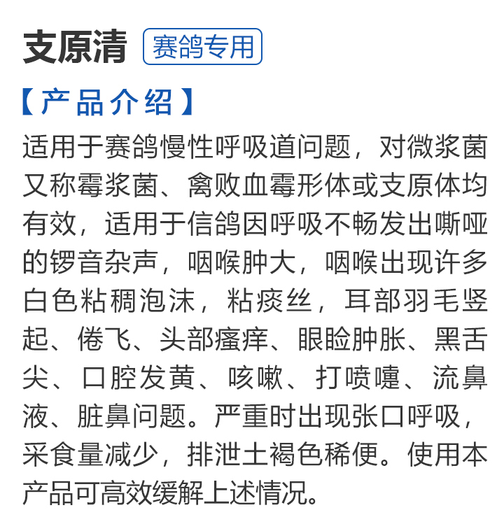 2026线上春展▪6元无门槛  -  指定商品:【爆灯】蓝精零 5克×10包 ;【爆灯】鸽滴威 5克×10包 ;【爆灯】莎门停 5克×10包 ;【爆灯】崇威灵 5克×10包 体内虫;【爆灯】益南混甘 5克×10包 ;【爆灯】回利球 5克×10包 ;【心连心】滴莎 10克×6袋;【爆灯】乎滴亢 5克×10包 ;【爆灯】超浓缩喜乐菌 500毫升 ;【心连心】球莎 10克×6袋 ;【爆灯】维诺护肝精 250毫升 ;【爆灯】虱螨体虫清 500毫升 ;【心连心】呼畅 10克×6袋 ;【爆灯】球可定 100毫升 ;【爆灯】复合预混合饲料Ⅱ维益菌 227克 ;【心连心】瘟痢停 10克×6袋 ;【爆灯】肠道宝 500克 ;【心连心】莎J净 10克×6袋 ;【心连心】鸽C净 10克×6袋 ;【顶峰】复合菌(胶囊)100粒 ;【顶峰】复合菌(粉剂) 280克 ;【顶峰】能量钙(浓缩型) 400毫升 ;【爱丽丝】喉痢清(加强型) 60粒(胶囊) ;【顶峰】能量钙(浓缩型) 2.5升 ;【爱丽丝】衣元净 60粒(胶囊);【施德福】特号六合一混合剂 5克×10包 ;【爱丽丝】毛滴虫净 60粒(胶囊);【爱丽丝】刹杆净(原沙门氏菌大肠杆菌杀星) 60粒(胶囊);【施德福】口服苗A 5克×10包 ;【爱丽丝】肝精 5克×10袋 ;【施德福】卡尼丁肝肾液 250毫升 ;【施德福】精华液 250毫升 ;【爱丽丝】呼吸道特号 60粒 (胶囊) ;【施德福】口服苗液 25毫升 ;【天津版稳拿】稳拿一号(呼吸道) 2公克×8袋 呼吸道;【天津版稳拿】稳拿二号(消化肠道) 3公克×8袋 肠道;【天津版稳拿】稳拿七号(毛滴虫) 2公克×8袋 毛滴虫;【上海龙园】魔宝 1000克 袋装;【上海龙园】维他肝精 250毫升 ;【上海龙园】鸽绿茶 100克 ;【上海龙园】浴宝 200克 ;【上海龙园】小育雏宝胶囊 100粒 ;【上海龙园】菌乐多 500毫升;【先锋】呼喉霸 5克×10包;【先锋】依原净 5克×10包 ;【西安凯鸽】客线枉 30毫升;【西安凯鸽】至樽独霸 100克;【西安凯鸽】至樽独霸 60粒(胶囊);【爆灯】T5鸽疫快克 20毫升 ;【西安凯鸽】果蔬营养丸 700克;【西安凯鸽】果蔬营养丸 2000克;【天津版稳拿】稳拿三号 2克×8包 球虫;【天津版稳拿】幼鸽夺霸 100粒 ;【天津版稳拿】幼鸽夺霸 300粒 ;【天津版稳拿】比赛夺霸3号 100粒 ;【天津版稳拿】比赛夺霸3号 300粒 ;【心连心】毛莎胶囊 60粒 ;【心连心】球锋胶囊 60粒 ;【天津版稳拿】虫清 3克×8包 体内虫;【心连心】呼畅 60粒(胶囊) ;【天津版稳拿】喉清 3克×8包 支原体/衣原体/念珠菌/呼吸道;【心连心】瘟痢停 60粒(胶囊) ;【天津版稳拿】粮霉清 200克 ;【心连心】莎J净胶囊 60粒 ;【爆灯】一滴灵 10毫升 单眼伤风;【爆灯】呼鼻灵 10毫升 ;【心连心】鸽C净 60粒(胶囊) ;【爆灯】维诺速补 100粒 ;【爆灯】老鸟回春丸 100粒 ;【心连心】毛呼二合一 10克×6袋;【爆灯】老鸟生子丸 100粒;【爆灯】依圆青 5克×10袋 ;【心连心】百消砃 100丸 ;【爆灯】泰力福 5克×10袋 呼吸道;【心连心】百消潵 150克 ;【爆灯】卫康防火墙 500毫升 ;【爆灯】矿力高峰液 250毫升;【心连心】独利双清 250毫升 ;【心连心】二合一啤酒酵母粉 600克 ;【爆灯】钙力奇 250毫升;【心连心】益酶多维电解质 150克 ;【爆灯】本草亢独饮 250毫升 ;【心连心】强化肝精(粉剂) 10克×10袋 ;【先锋】呼爽先锋 5克×10包 ;【心连心】强化肝精浓缩液 120毫升 ;【先锋】呼毛二合一 5克×10包 ;李猛推荐【爆灯】鸽疫康 500毫升 ;【先锋】先锋三合一 5克×10包 球虫/毛滴虫/沙门氏;【心连心】生物多肽矿物磷钙粉 500克 ;【先锋】净滴先锋 5克×10包;【心连心】AM活菌浓缩液 500毫升 ;【先锋】不脱翼 5毫升;李猛推荐【爆灯】维诺保 100毫升 ;【心连心】多效营养精华素 1680克 ;【心连心】AD3磷钙液 250毫升 ;【爆灯】超能素5000 1500克袋装 ;【心连心】瘟痢停丸 60丸 ;【爆灯】复合预混合饲料/6合1能量营养素 250克 ;【心连心】优益活菌液 1000毫升 ;【爱丽丝】喉痢清 5克×10袋 ;【上海龙园】种鸽宝 300粒 ;【上海龙园】种鸽粉 200克 ;【爱丽丝】衣原净2代 5克×10袋 ;【上海龙园】一喷灵 25毫升 ;【爱丽丝】毛滴净 5克×10袋 ;【上海龙园】绿色精 500毫升;【爱丽丝】刹杆净(原沙门氏菌大肠杆菌杀星) 5克×10袋 ;【上海龙园】营养蒜油 200毫升;【爱丽丝】呼吸道特号 5克×10袋 ;【上海龙园】康飞力 200毫升;【顶峰】保比液 100毫升 ;【上海龙园】赛神滴眼液 10毫升 ;【爱丽丝】毛球二合一 5克×10袋 ;【上海龙园】一滴灵 10毫升 单眼伤风;【爱丽丝】毛滴虫球虫二合一 60粒 ;【上海龙园】泻必停 5克×10袋 ;【顶峰】牛至香酚保比液 500毫升 ;【上海龙园】喉必清 5克×10袋;【顶峰】商寒停 100片 伤寒停;【顶峰】能量钙 300克 ;【上海龙园】抗球粉 5克×10包;【爱丽丝】稳肠赢 100克 ;【顶峰】全能电解质 500毫升 ;【上海龙园】抗滴粉 5克×10包 ;【顶峰】维他酵母粉 800克 ;【上海龙园】电解质维生素C粉 (甲7.5克+乙12.5克)×10组盒;【上海龙园】小育雏宝片剂 100片;【上海龙园】大育雏宝胶囊 500粒;【上海龙园】嗉囊清 100毫升;【上海龙园】大育雏宝片剂 500片;【上海龙园】粒粒成 100粒;【上海龙园】克虫宝 80粒;【上海龙园】红茶 100克;【上海龙园】强健宝 750克;【凡赛尔】欧乐强 鸽浴粉 1000克 天然沐浴圣品/消除肌肉疲劳/洗澡/洗浴;【爱丽丝】钙磷营养速补 400片;【北斗】雌宝 100粒;【北斗】雄宝 100粒 ;【北斗】克立停 100粒;【北斗】育雏宝 300粒;【天津版稳拿】稳拿五号 3克×8包 单眼伤风;【爆灯】多关秘密武器 30毫升 ;【爆灯】
