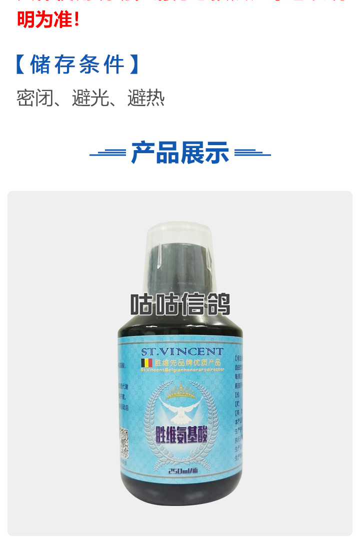 2026线上春展▪满1000-100  -  指定商品:【爆灯】蓝精零 5克×10包 ;【爆灯】鸽滴威 5克×10包 ;【爆灯】莎门停 5克×10包 ;【爆灯】崇威灵 5克×10包 体内虫;【爆灯】益南混甘 5克×10包 ;【爆灯】回利球 5克×10包 ;【心连心】滴莎 10克×6袋;【爆灯】乎滴亢 5克×10包 ;【爆灯】超浓缩喜乐菌 500毫升 ;【心连心】球莎 10克×6袋 ;【爆灯】维诺护肝精 250毫升 ;【爆灯】虱螨体虫清 500毫升 ;【心连心】呼畅 10克×6袋 ;【爆灯】球可定 100毫升 ;【爆灯】复合预混合饲料Ⅱ维益菌 227克 ;【心连心】瘟痢停 10克×6袋 ;【爆灯】肠道宝 500克 ;【心连心】莎J净 10克×6袋 ;【心连心】鸽C净 10克×6袋 ;【顶峰】复合菌(胶囊)100粒 ;【顶峰】复合菌(粉剂) 280克 ;【顶峰】能量钙(浓缩型) 400毫升 ;【爱丽丝】喉痢清(加强型) 60粒(胶囊) ;【顶峰】能量钙(浓缩型) 2.5升 ;【爱丽丝】衣元净 60粒(胶囊);【施德福】特号六合一混合剂 5克×10包 ;【爱丽丝】毛滴虫净 60粒(胶囊);【爱丽丝】刹杆净(原沙门氏菌大肠杆菌杀星) 60粒(胶囊);【施德福】口服苗A 5克×10包 ;【爱丽丝】肝精 5克×10袋 ;【施德福】卡尼丁肝肾液 250毫升 ;【施德福】精华液 250毫升 ;【爱丽丝】呼吸道特号 60粒 (胶囊) ;【施德福】口服苗液 25毫升 ;【天津版稳拿】稳拿一号(呼吸道) 2公克×8袋 呼吸道;【天津版稳拿】稳拿二号(消化肠道) 3公克×8袋 肠道;【天津版稳拿】稳拿七号(毛滴虫) 2公克×8袋 毛滴虫;【上海龙园】魔宝 1000克 袋装;【上海龙园】维他肝精 250毫升 ;【上海龙园】鸽绿茶 100克 ;【上海龙园】浴宝 200克 ;【上海龙园】小育雏宝胶囊 100粒 ;【上海龙园】菌乐多 500毫升;【先锋】呼喉霸 5克×10包;【先锋】依原净 5克×10包 ;【西安凯鸽】客线枉 30毫升;【西安凯鸽】至樽独霸 100克;【西安凯鸽】至樽独霸 60粒(胶囊);【爆灯】T5鸽疫快克 20毫升 ;【西安凯鸽】果蔬营养丸 700克;【西安凯鸽】果蔬营养丸 2000克;【天津版稳拿】稳拿三号 2克×8包 球虫;【天津版稳拿】幼鸽夺霸 100粒 ;【天津版稳拿】幼鸽夺霸 300粒 ;【天津版稳拿】比赛夺霸3号 100粒 ;【天津版稳拿】比赛夺霸3号 300粒 ;【心连心】毛莎胶囊 60粒 ;【心连心】球锋胶囊 60粒 ;【天津版稳拿】虫清 3克×8包 体内虫;【心连心】呼畅 60粒(胶囊) ;【天津版稳拿】喉清 3克×8包 支原体/衣原体/念珠菌/呼吸道;【心连心】瘟痢停 60粒(胶囊) ;【天津版稳拿】粮霉清 200克 ;【心连心】莎J净胶囊 60粒 ;【爆灯】一滴灵 10毫升 单眼伤风;【爆灯】呼鼻灵 10毫升 ;【心连心】鸽C净 60粒(胶囊) ;【爆灯】维诺速补 100粒 ;【爆灯】老鸟回春丸 100粒 ;【心连心】毛呼二合一 10克×6袋;【爆灯】老鸟生子丸 100粒;【爆灯】依圆青 5克×10袋 ;【心连心】百消砃 100丸 ;【爆灯】泰力福 5克×10袋 呼吸道;【心连心】百消潵 150克 ;【爆灯】卫康防火墙 500毫升 ;【爆灯】矿力高峰液 250毫升;【心连心】独利双清 250毫升 ;【心连心】二合一啤酒酵母粉 600克 ;【爆灯】钙力奇 250毫升;【心连心】益酶多维电解质 150克 ;【爆灯】本草亢独饮 250毫升 ;【心连心】强化肝精(粉剂) 10克×10袋 ;【先锋】呼爽先锋 5克×10包 ;【心连心】强化肝精浓缩液 120毫升 ;【先锋】呼毛二合一 5克×10包 ;李猛推荐【爆灯】鸽疫康 500毫升 ;【先锋】先锋三合一 5克×10包 球虫/毛滴虫/沙门氏;【心连心】生物多肽矿物磷钙粉 500克 ;【先锋】净滴先锋 5克×10包;【心连心】AM活菌浓缩液 500毫升 ;【先锋】不脱翼 5毫升;李猛推荐【爆灯】维诺保 100毫升 ;【心连心】多效营养精华素 1680克 ;【心连心】AD3磷钙液 250毫升 ;【爆灯】超能素5000 1500克袋装 ;【心连心】瘟痢停丸 60丸 ;【爆灯】复合预混合饲料/6合1能量营养素 250克 ;【心连心】优益活菌液 1000毫升 ;【爱丽丝】喉痢清 5克×10袋 ;【上海龙园】种鸽宝 300粒 ;【上海龙园】种鸽粉 200克 ;【爱丽丝】衣原净2代 5克×10袋 ;【上海龙园】一喷灵 25毫升 ;【爱丽丝】毛滴净 5克×10袋 ;【上海龙园】绿色精 500毫升;【爱丽丝】刹杆净(原沙门氏菌大肠杆菌杀星) 5克×10袋 ;【上海龙园】营养蒜油 200毫升;【爱丽丝】呼吸道特号 5克×10袋 ;【上海龙园】康飞力 200毫升;【顶峰】保比液 100毫升 ;【上海龙园】赛神滴眼液 10毫升 ;【爱丽丝】毛球二合一 5克×10袋 ;【上海龙园】一滴灵 10毫升 单眼伤风;【爱丽丝】毛滴虫球虫二合一 60粒 ;【上海龙园】泻必停 5克×10袋 ;【顶峰】牛至香酚保比液 500毫升 ;【上海龙园】喉必清 5克×10袋;【顶峰】商寒停 100片 伤寒停;【顶峰】能量钙 300克 ;【上海龙园】抗球粉 5克×10包;【爱丽丝】稳肠赢 100克 ;【顶峰】全能电解质 500毫升 ;【上海龙园】抗滴粉 5克×10包 ;【顶峰】维他酵母粉 800克 ;【上海龙园】电解质维生素C粉 (甲7.5克+乙12.5克)×10组盒;【上海龙园】小育雏宝片剂 100片;【上海龙园】大育雏宝胶囊 500粒;【上海龙园】嗉囊清 100毫升;【上海龙园】大育雏宝片剂 500片;【上海龙园】粒粒成 100粒;【上海龙园】克虫宝 80粒;【上海龙园】红茶 100克;【上海龙园】强健宝 750克;【凡赛尔】欧乐强 鸽浴粉 1000克 天然沐浴圣品/消除肌肉疲劳/洗澡/洗浴;【爱丽丝】钙磷营养速补 400片;【北斗】雌宝 100粒;【北斗】雄宝 100粒 ;【北斗】克立停 100粒;【北斗】育雏宝 300粒;【天津版稳拿】稳拿五号 3克×8包 单眼伤风;【爆灯】多关秘密武器 30毫升 ;【爆灯】维