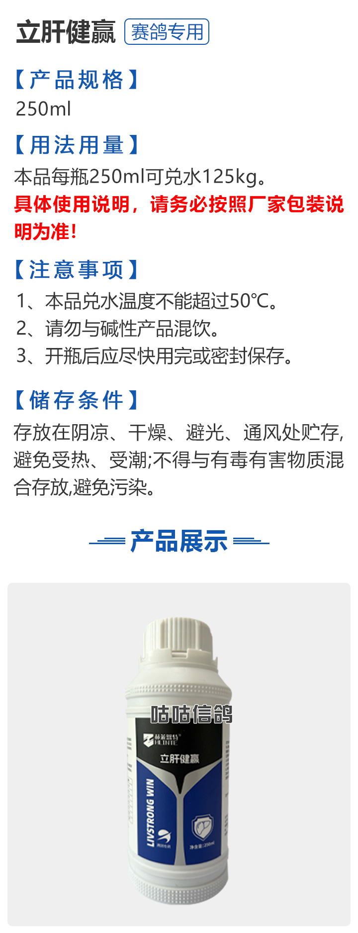2026线上春展▪6元无门槛  -  指定商品:【爆灯】蓝精零 5克×10包 ;【爆灯】鸽滴威 5克×10包 ;【爆灯】莎门停 5克×10包 ;【爆灯】崇威灵 5克×10包 体内虫;【爆灯】益南混甘 5克×10包 ;【爆灯】回利球 5克×10包 ;【心连心】滴莎 10克×6袋;【爆灯】乎滴亢 5克×10包 ;【爆灯】超浓缩喜乐菌 500毫升 ;【心连心】球莎 10克×6袋 ;【爆灯】维诺护肝精 250毫升 ;【爆灯】虱螨体虫清 500毫升 ;【心连心】呼畅 10克×6袋 ;【爆灯】球可定 100毫升 ;【爆灯】复合预混合饲料Ⅱ维益菌 227克 ;【心连心】瘟痢停 10克×6袋 ;【爆灯】肠道宝 500克 ;【心连心】莎J净 10克×6袋 ;【心连心】鸽C净 10克×6袋 ;【顶峰】复合菌(胶囊)100粒 ;【顶峰】复合菌(粉剂) 280克 ;【顶峰】能量钙(浓缩型) 400毫升 ;【爱丽丝】喉痢清(加强型) 60粒(胶囊) ;【顶峰】能量钙(浓缩型) 2.5升 ;【爱丽丝】衣元净 60粒(胶囊);【施德福】特号六合一混合剂 5克×10包 ;【爱丽丝】毛滴虫净 60粒(胶囊);【爱丽丝】刹杆净(原沙门氏菌大肠杆菌杀星) 60粒(胶囊);【施德福】口服苗A 5克×10包 ;【爱丽丝】肝精 5克×10袋 ;【施德福】卡尼丁肝肾液 250毫升 ;【施德福】精华液 250毫升 ;【爱丽丝】呼吸道特号 60粒 (胶囊) ;【施德福】口服苗液 25毫升 ;【天津版稳拿】稳拿一号(呼吸道) 2公克×8袋 呼吸道;【天津版稳拿】稳拿二号(消化肠道) 3公克×8袋 肠道;【天津版稳拿】稳拿七号(毛滴虫) 2公克×8袋 毛滴虫;【上海龙园】魔宝 1000克 袋装;【上海龙园】维他肝精 250毫升 ;【上海龙园】鸽绿茶 100克 ;【上海龙园】浴宝 200克 ;【上海龙园】小育雏宝胶囊 100粒 ;【上海龙园】菌乐多 500毫升;【先锋】呼喉霸 5克×10包;【先锋】依原净 5克×10包 ;【西安凯鸽】客线枉 30毫升;【西安凯鸽】至樽独霸 100克;【西安凯鸽】至樽独霸 60粒(胶囊);【爆灯】T5鸽疫快克 20毫升 ;【西安凯鸽】果蔬营养丸 700克;【西安凯鸽】果蔬营养丸 2000克;【天津版稳拿】稳拿三号 2克×8包 球虫;【天津版稳拿】幼鸽夺霸 100粒 ;【天津版稳拿】幼鸽夺霸 300粒 ;【天津版稳拿】比赛夺霸3号 100粒 ;【天津版稳拿】比赛夺霸3号 300粒 ;【心连心】毛莎胶囊 60粒 ;【心连心】球锋胶囊 60粒 ;【天津版稳拿】虫清 3克×8包 体内虫;【心连心】呼畅 60粒(胶囊) ;【天津版稳拿】喉清 3克×8包 支原体/衣原体/念珠菌/呼吸道;【心连心】瘟痢停 60粒(胶囊) ;【天津版稳拿】粮霉清 200克 ;【心连心】莎J净胶囊 60粒 ;【爆灯】一滴灵 10毫升 单眼伤风;【爆灯】呼鼻灵 10毫升 ;【心连心】鸽C净 60粒(胶囊) ;【爆灯】维诺速补 100粒 ;【爆灯】老鸟回春丸 100粒 ;【心连心】毛呼二合一 10克×6袋;【爆灯】老鸟生子丸 100粒;【爆灯】依圆青 5克×10袋 ;【心连心】百消砃 100丸 ;【爆灯】泰力福 5克×10袋 呼吸道;【心连心】百消潵 150克 ;【爆灯】卫康防火墙 500毫升 ;【爆灯】矿力高峰液 250毫升;【心连心】独利双清 250毫升 ;【心连心】二合一啤酒酵母粉 600克 ;【爆灯】钙力奇 250毫升;【心连心】益酶多维电解质 150克 ;【爆灯】本草亢独饮 250毫升 ;【心连心】强化肝精(粉剂) 10克×10袋 ;【先锋】呼爽先锋 5克×10包 ;【心连心】强化肝精浓缩液 120毫升 ;【先锋】呼毛二合一 5克×10包 ;李猛推荐【爆灯】鸽疫康 500毫升 ;【先锋】先锋三合一 5克×10包 球虫/毛滴虫/沙门氏;【心连心】生物多肽矿物磷钙粉 500克 ;【先锋】净滴先锋 5克×10包;【心连心】AM活菌浓缩液 500毫升 ;【先锋】不脱翼 5毫升;李猛推荐【爆灯】维诺保 100毫升 ;【心连心】多效营养精华素 1680克 ;【心连心】AD3磷钙液 250毫升 ;【爆灯】超能素5000 1500克袋装 ;【心连心】瘟痢停丸 60丸 ;【爆灯】复合预混合饲料/6合1能量营养素 250克 ;【心连心】优益活菌液 1000毫升 ;【爱丽丝】喉痢清 5克×10袋 ;【上海龙园】种鸽宝 300粒 ;【上海龙园】种鸽粉 200克 ;【爱丽丝】衣原净2代 5克×10袋 ;【上海龙园】一喷灵 25毫升 ;【爱丽丝】毛滴净 5克×10袋 ;【上海龙园】绿色精 500毫升;【爱丽丝】刹杆净(原沙门氏菌大肠杆菌杀星) 5克×10袋 ;【上海龙园】营养蒜油 200毫升;【爱丽丝】呼吸道特号 5克×10袋 ;【上海龙园】康飞力 200毫升;【顶峰】保比液 100毫升 ;【上海龙园】赛神滴眼液 10毫升 ;【爱丽丝】毛球二合一 5克×10袋 ;【上海龙园】一滴灵 10毫升 单眼伤风;【爱丽丝】毛滴虫球虫二合一 60粒 ;【上海龙园】泻必停 5克×10袋 ;【顶峰】牛至香酚保比液 500毫升 ;【上海龙园】喉必清 5克×10袋;【顶峰】商寒停 100片 伤寒停;【顶峰】能量钙 300克 ;【上海龙园】抗球粉 5克×10包;【爱丽丝】稳肠赢 100克 ;【顶峰】全能电解质 500毫升 ;【上海龙园】抗滴粉 5克×10包 ;【顶峰】维他酵母粉 800克 ;【上海龙园】电解质维生素C粉 (甲7.5克+乙12.5克)×10组盒;【上海龙园】小育雏宝片剂 100片;【上海龙园】大育雏宝胶囊 500粒;【上海龙园】嗉囊清 100毫升;【上海龙园】大育雏宝片剂 500片;【上海龙园】粒粒成 100粒;【上海龙园】克虫宝 80粒;【上海龙园】红茶 100克;【上海龙园】强健宝 750克;【凡赛尔】欧乐强 鸽浴粉 1000克 天然沐浴圣品/消除肌肉疲劳/洗澡/洗浴;【爱丽丝】钙磷营养速补 400片;【北斗】雌宝 100粒;【北斗】雄宝 100粒 ;【北斗】克立停 100粒;【北斗】育雏宝 300粒;【天津版稳拿】稳拿五号 3克×8包 单眼伤风;【爆灯】多关秘密武器 30毫升 ;【爆灯】