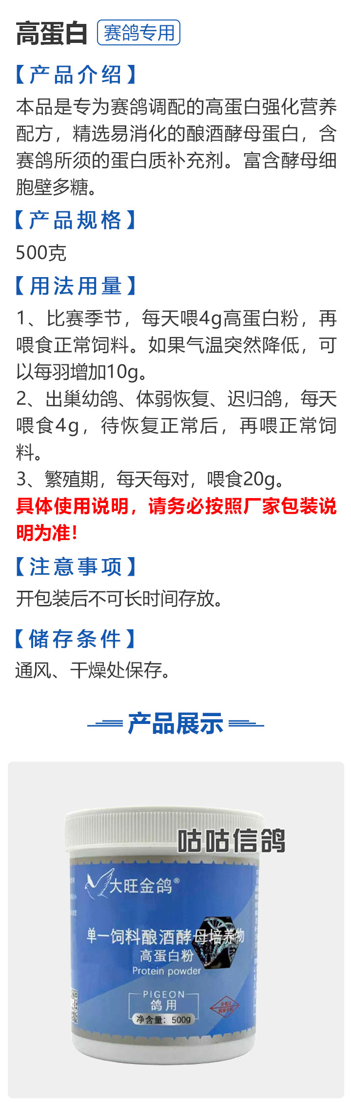 【大旺金鸽】高蛋白 500克